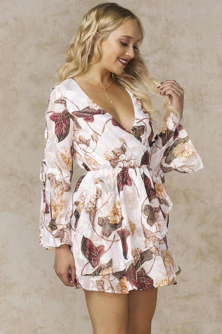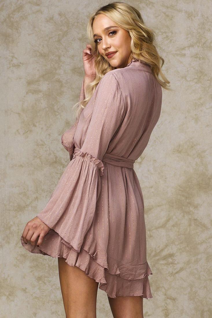 Raleigh Deep V Long Sleeve Wrap Dress Rust