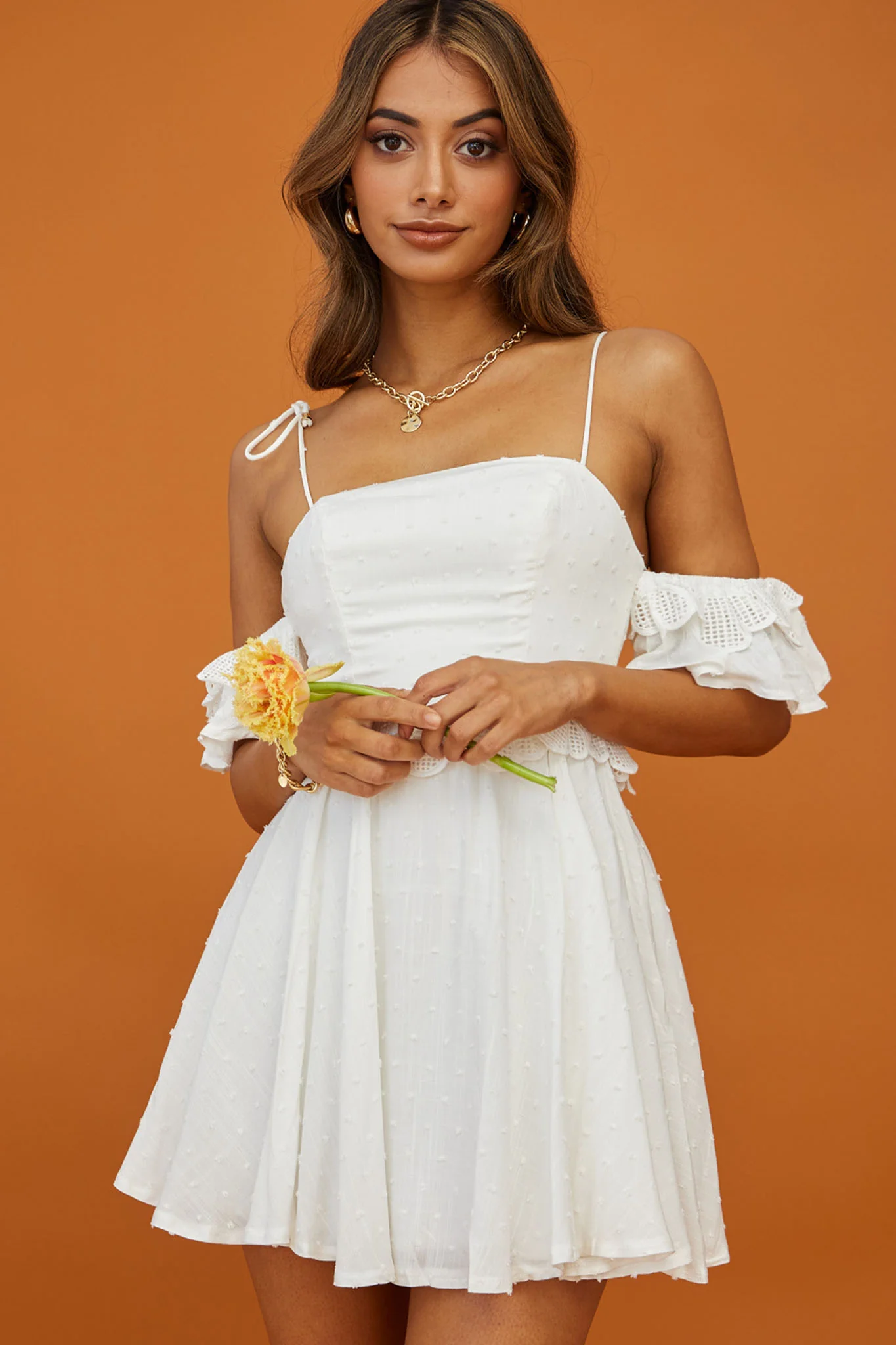 Catch Feelings Sweetheart Neckline Dot Trim Dress White