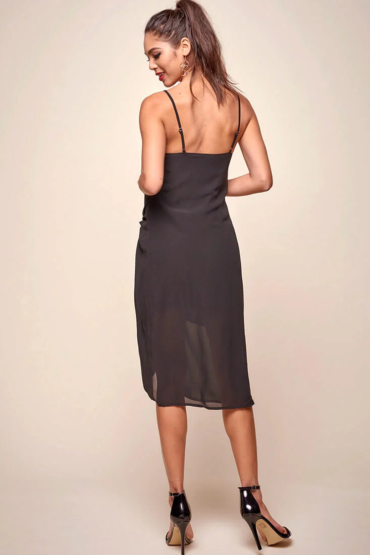 Sofie Asymmetrical cutout Turtle Neck Dress Black