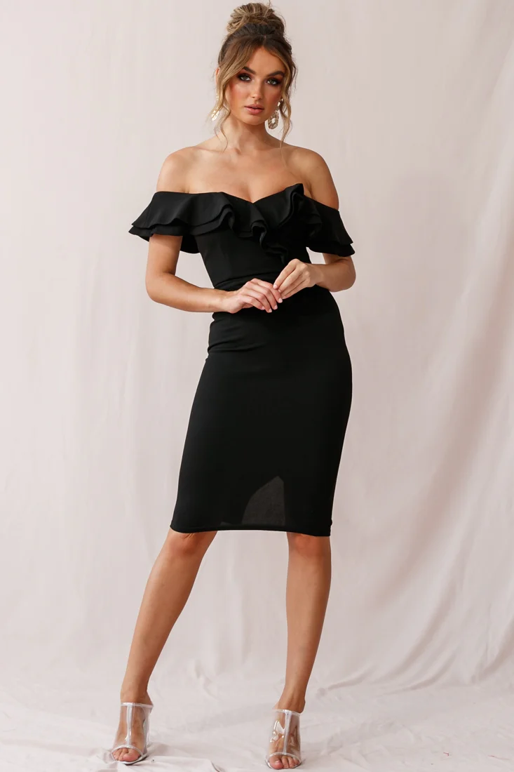 Rossi Ruffled Off The Shoulder Bodycon Dress Black