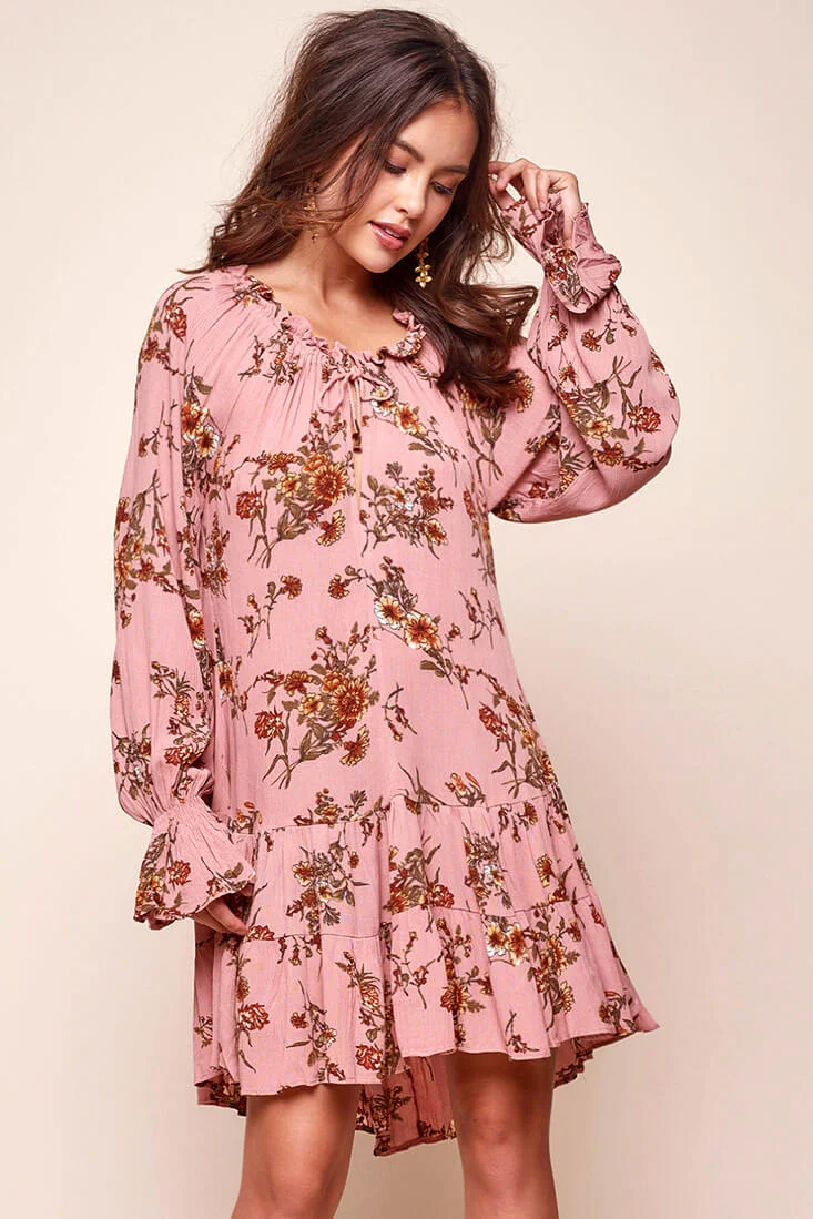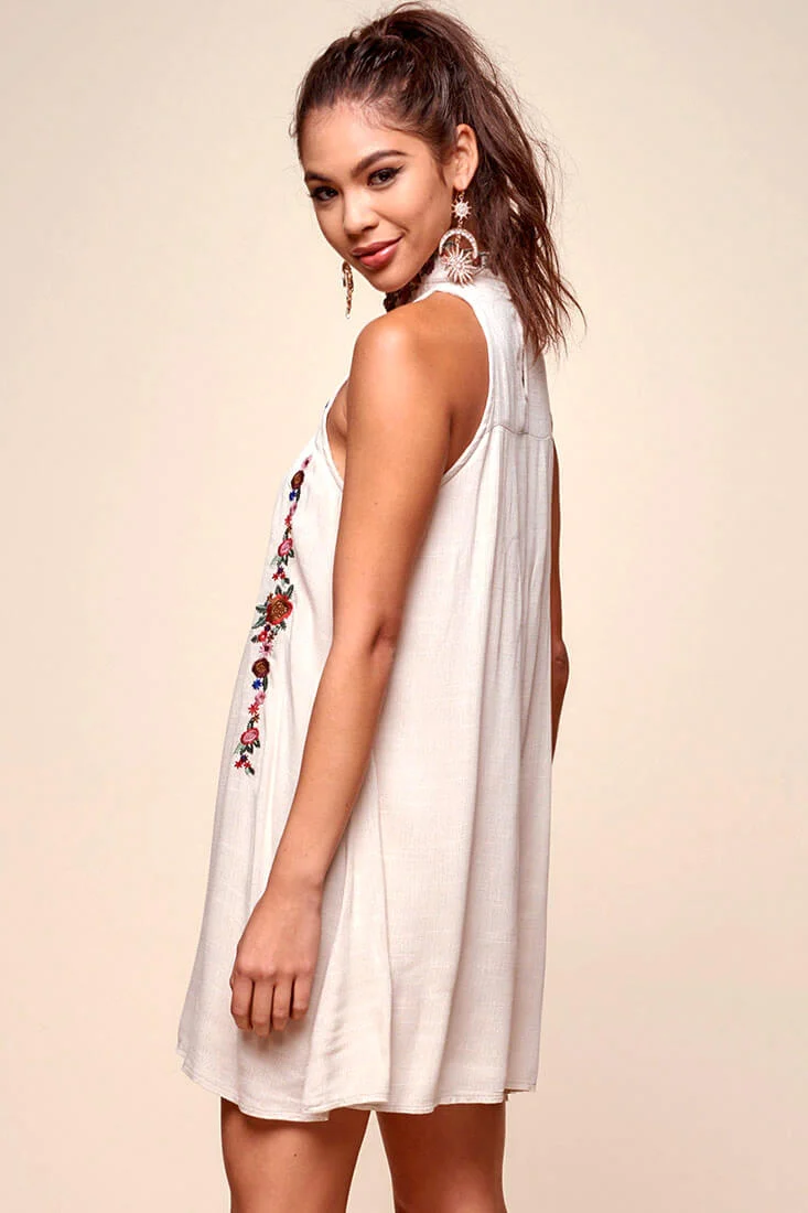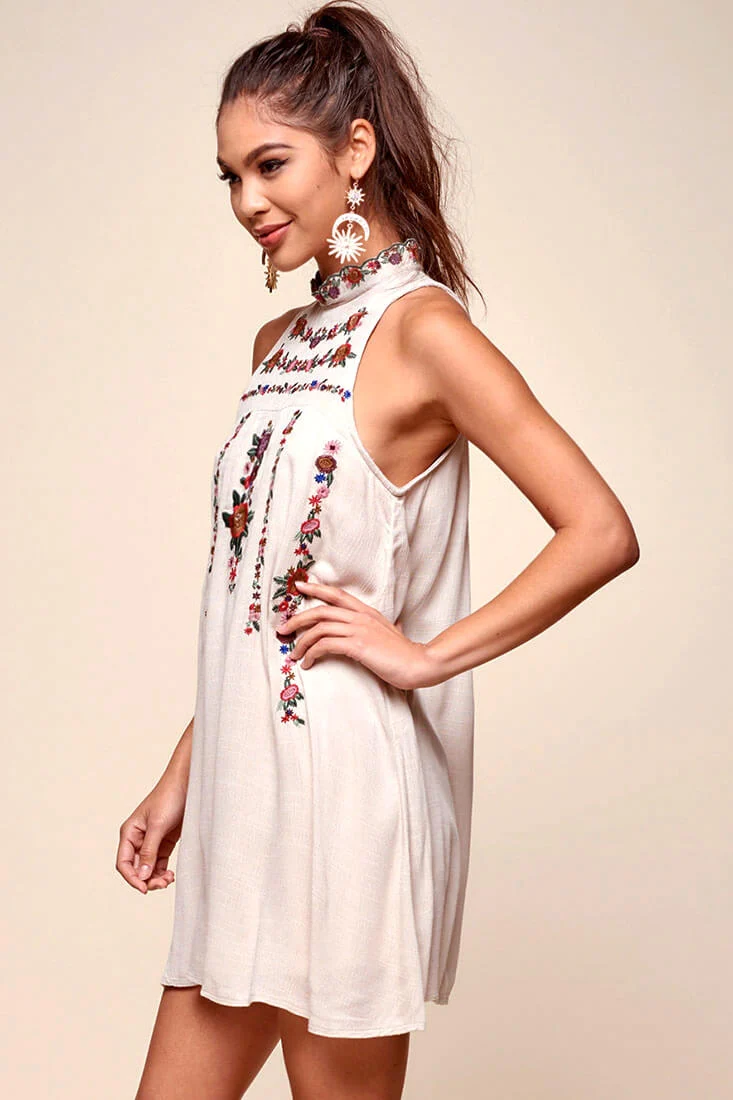 Shonda Floral Embroidered Detail Mid-Length Dress Beige