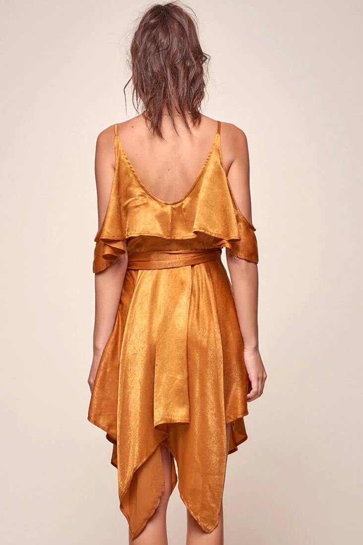 Ivy Lace Up Waist Bodycon Dress Tan Orange