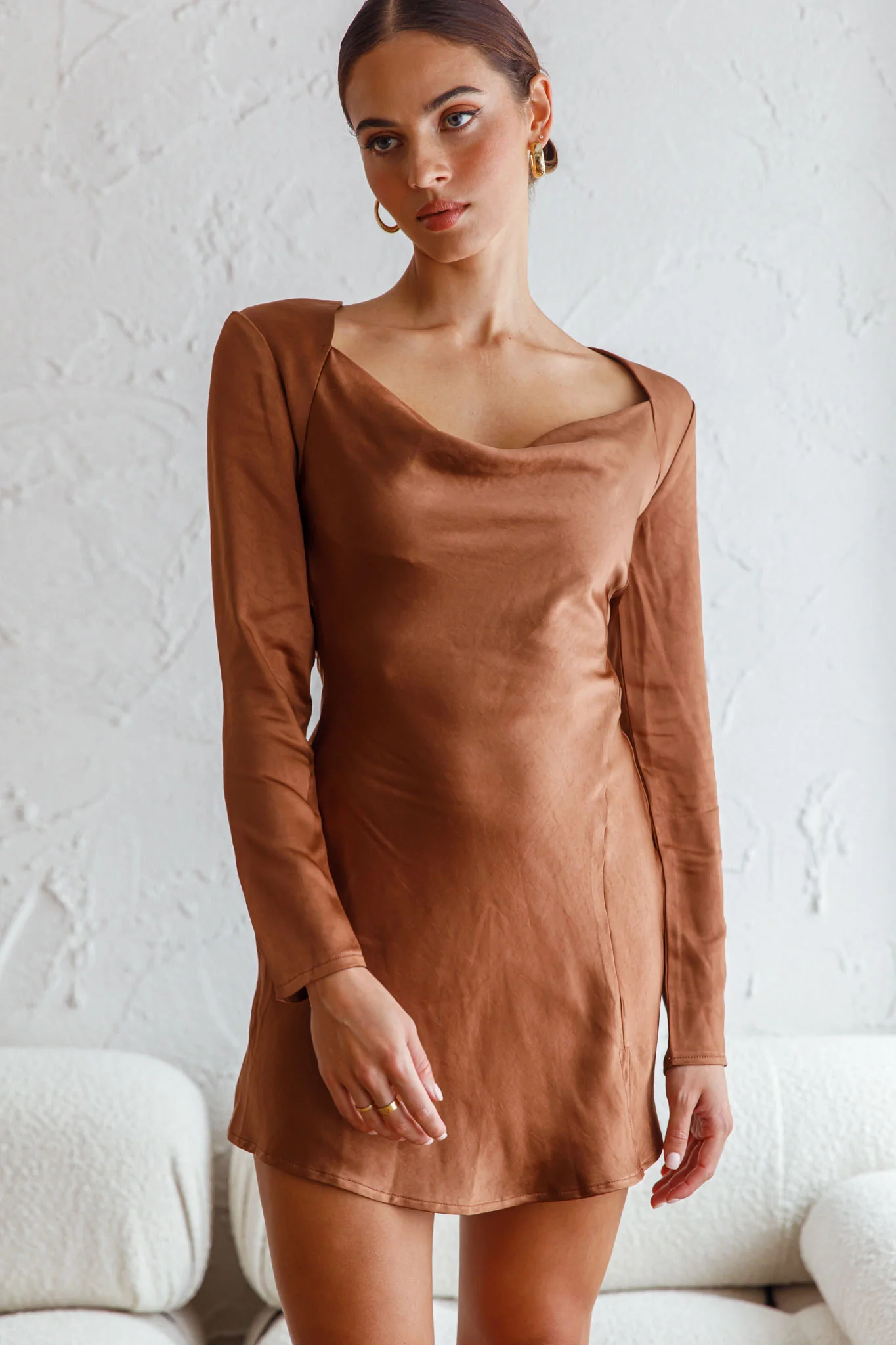Champs Elysees Long Sleeve Open Back Mini Dress Chocolate