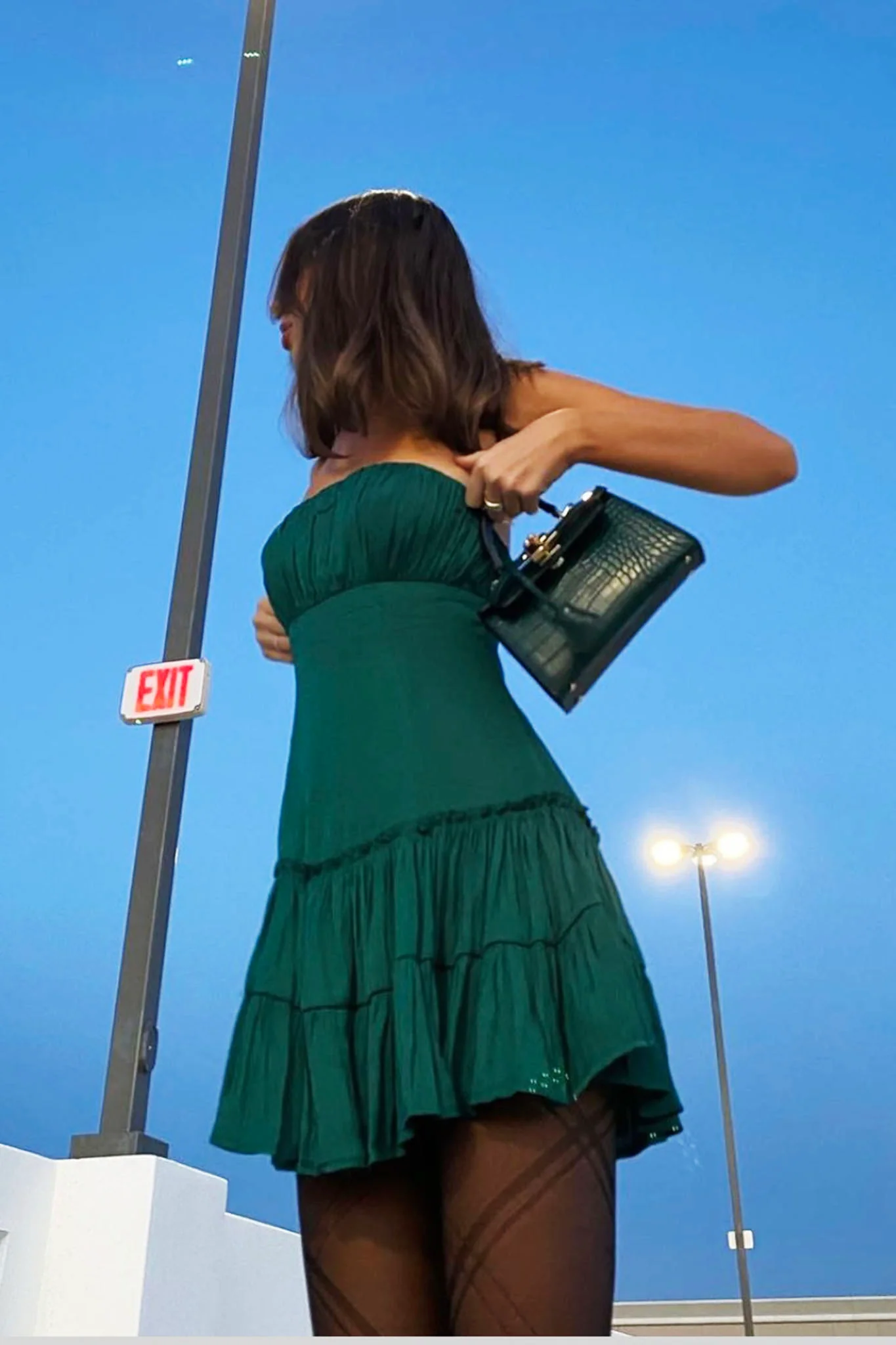 On A Whim Strapless Dropped Waist Dress Forest Green