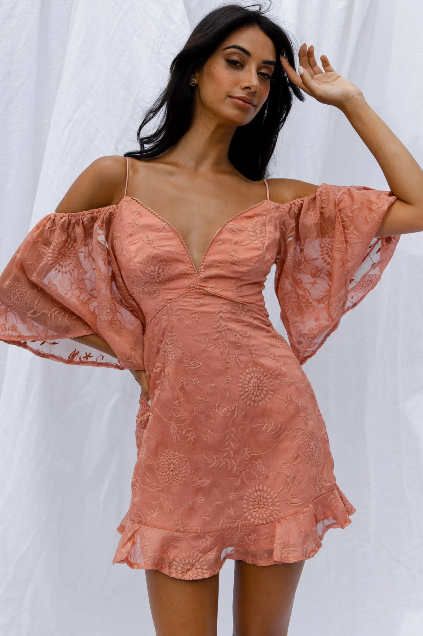 Koda Bell Sleeve Lace-Up Back Mini Dress Peach