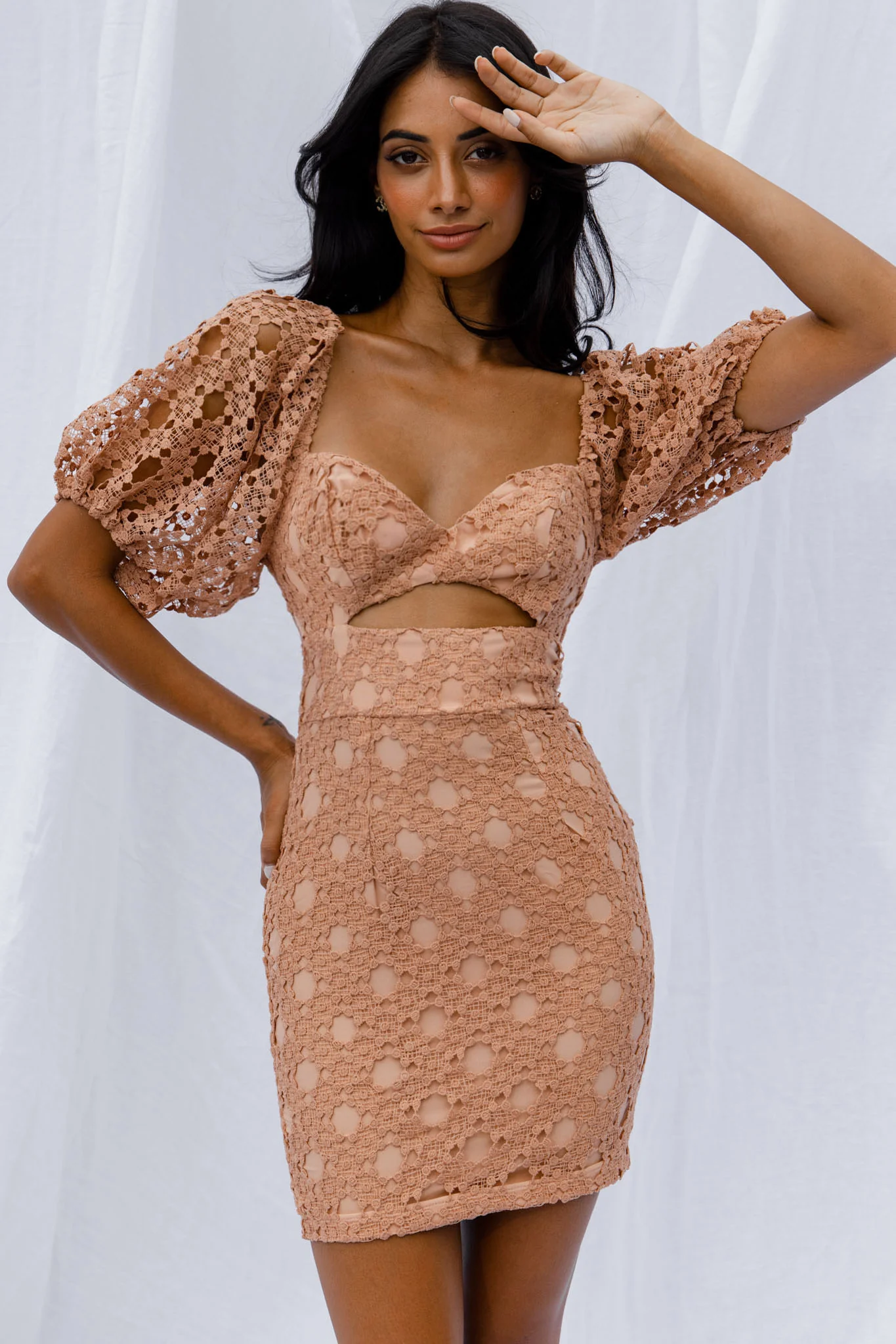 Catch Feelings Sweetheart Neckline Crochet Lace Overlay Dress Mocha