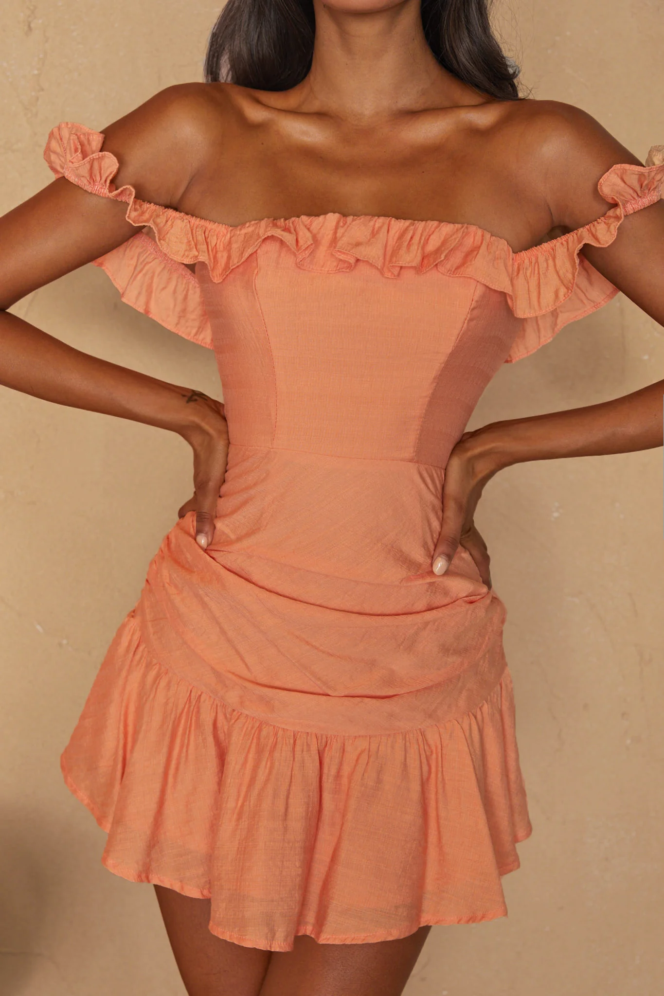 Paradis Off-Shoulder Ruched Bodice Mini Dress Mango