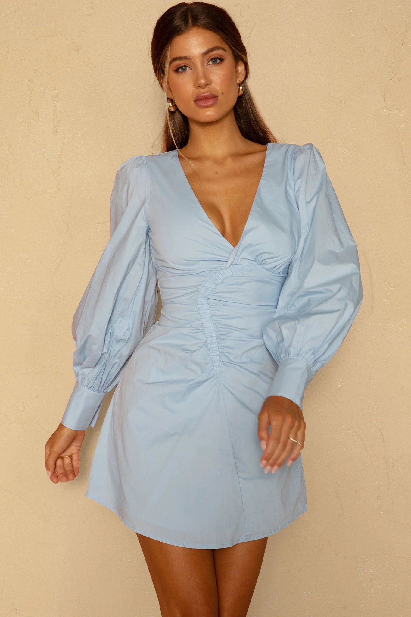 Josie Long Sleeved Ruched Feature Mini Dress Blue