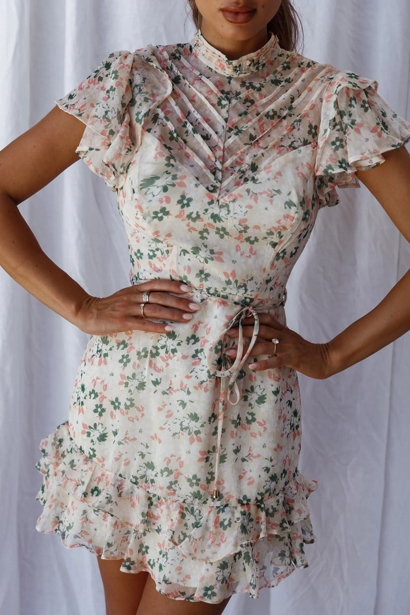 Lark High Neck Ruffle Sleeve Dress Flower Print Yellow