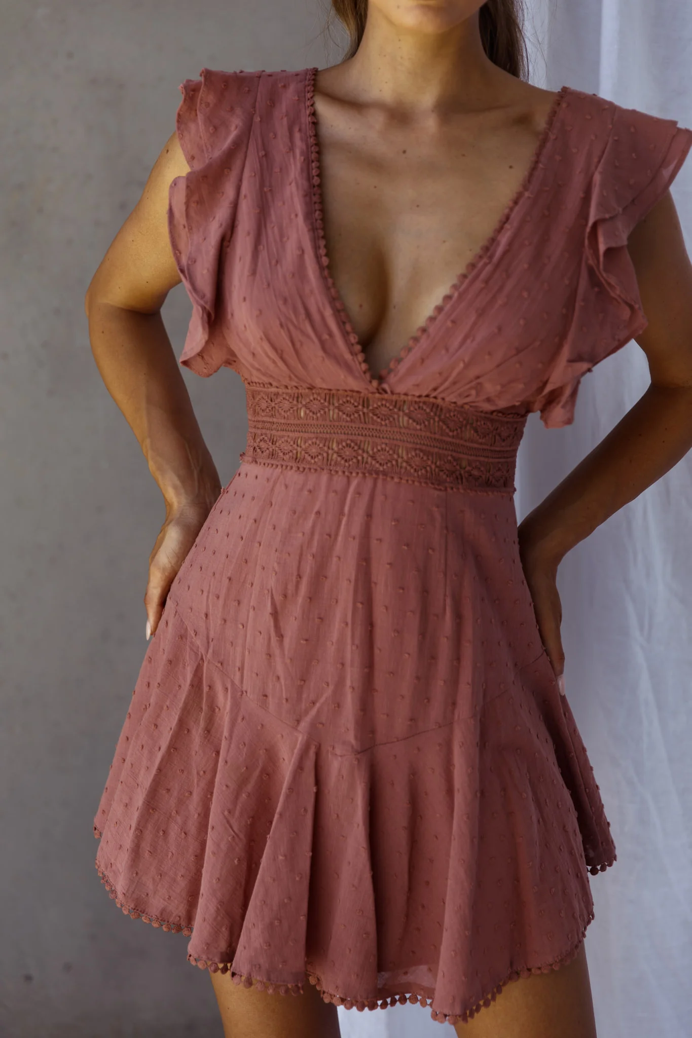 Idyllwild Ruffle Shoulder Mini Dress Rose