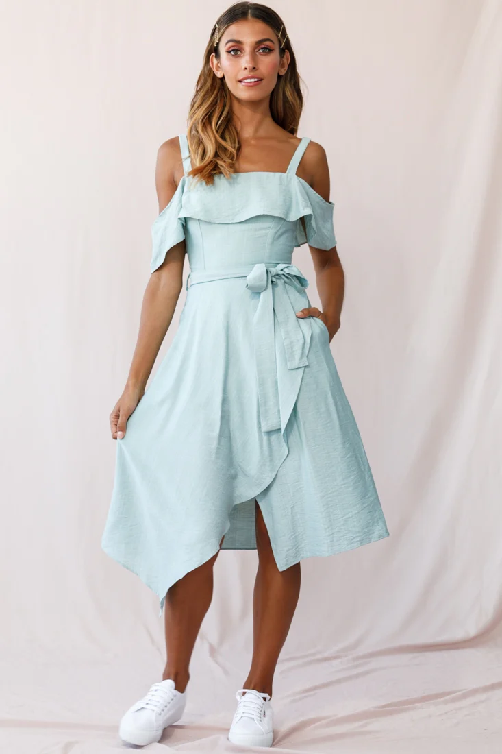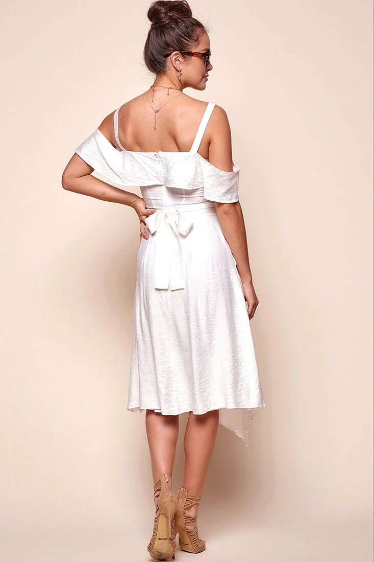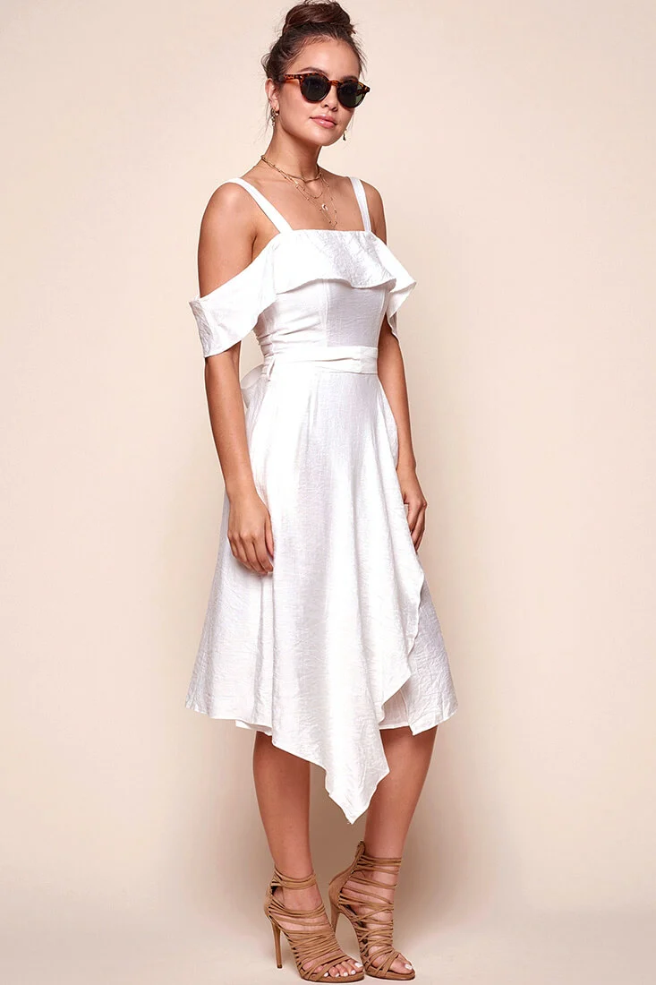 Eva Babydoll Off-The-Shoulder Dress Beige