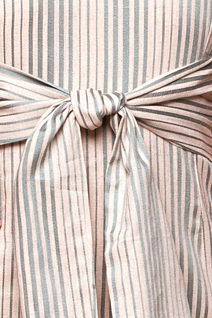 Kristen-Lee Striped Waist Tie Dress Beige & Mustard