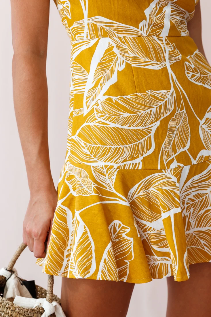 Erin Layered Ruffle Waist Tie Dress Mustard