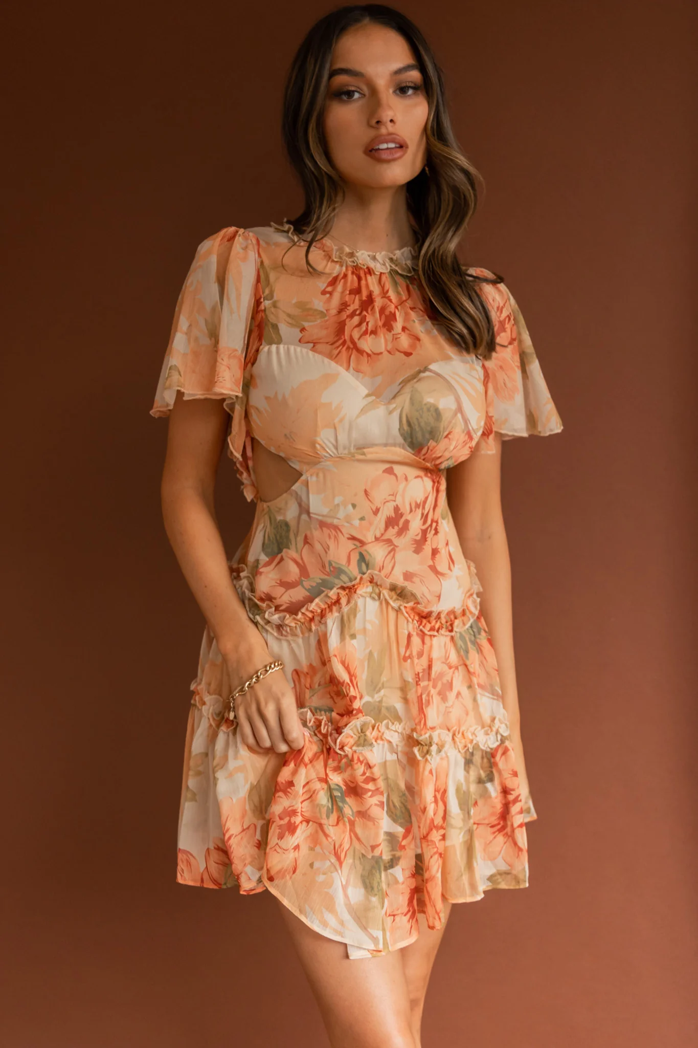 Tres Chic Flutter Sleeve Cut-Out Dress Botanical Tangerine