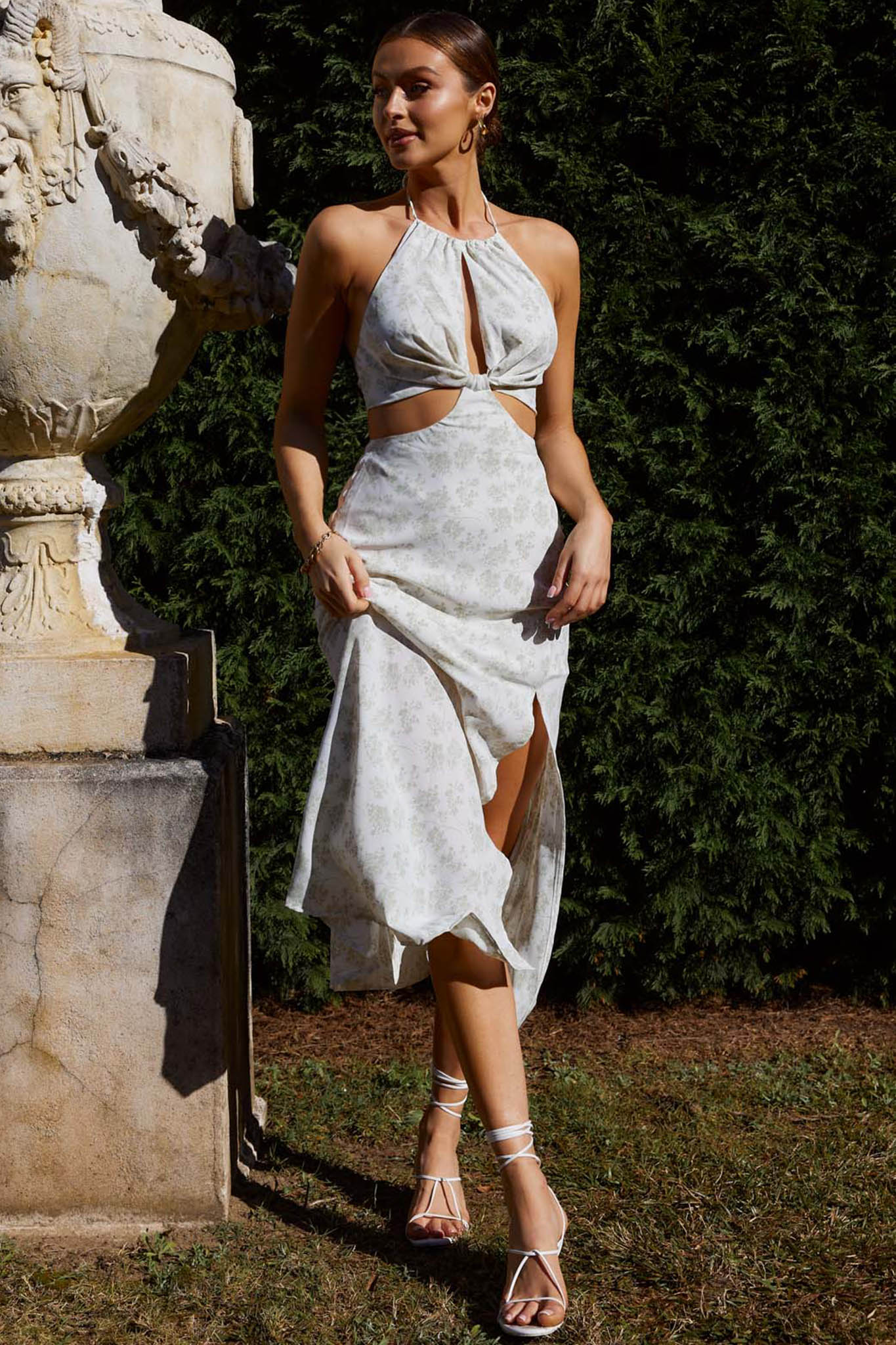 Rising Sun Cut-Out Bodice Dress Floral Print Sage