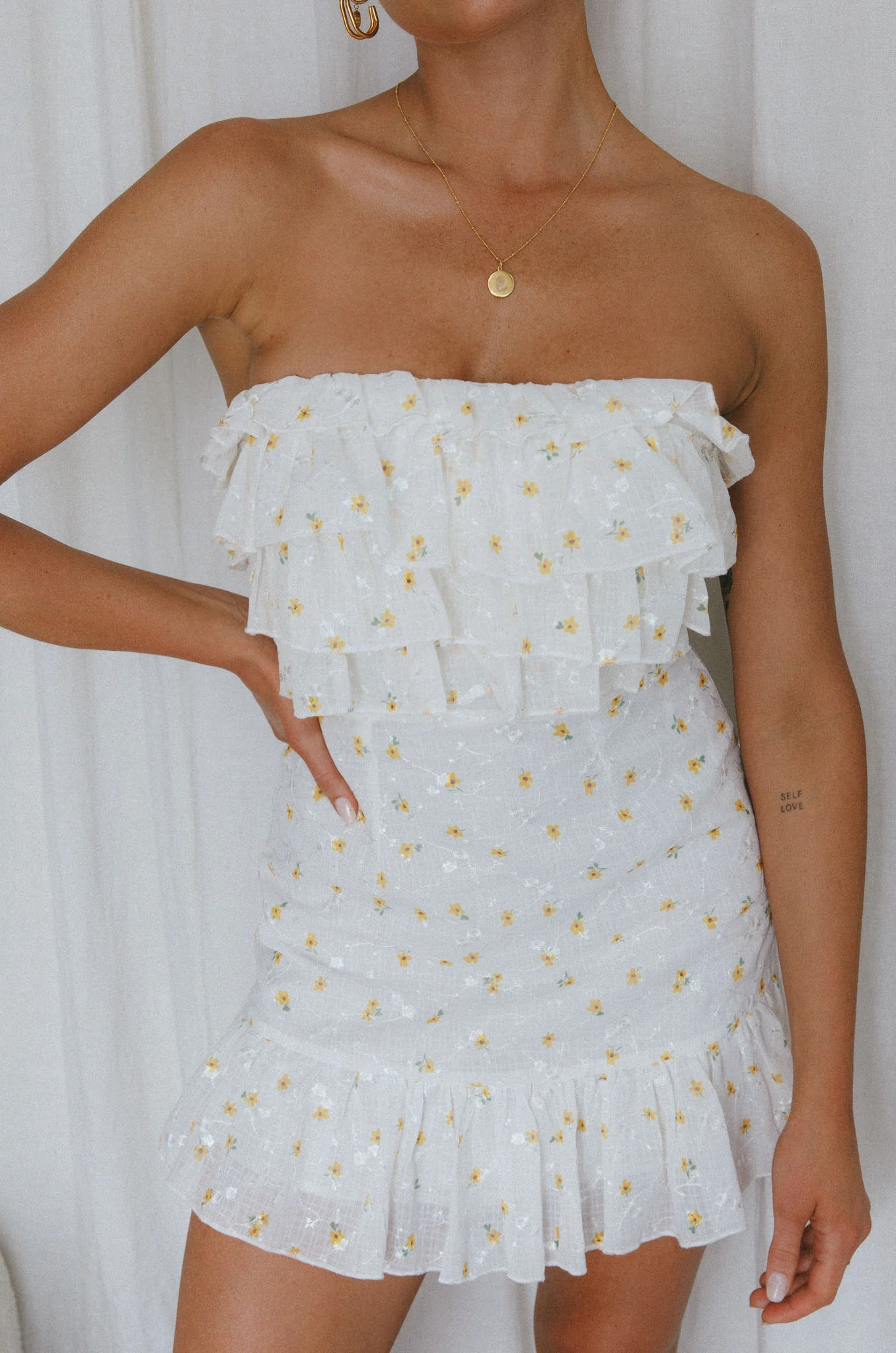 Talulah Ruffle Bust Mini Dress Floral Yellow