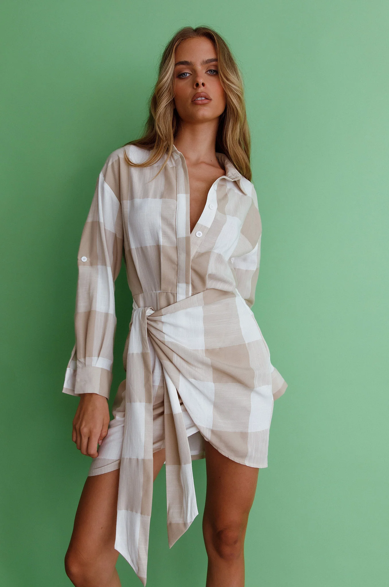 Staten Island Wrap Shirt Dress Sand