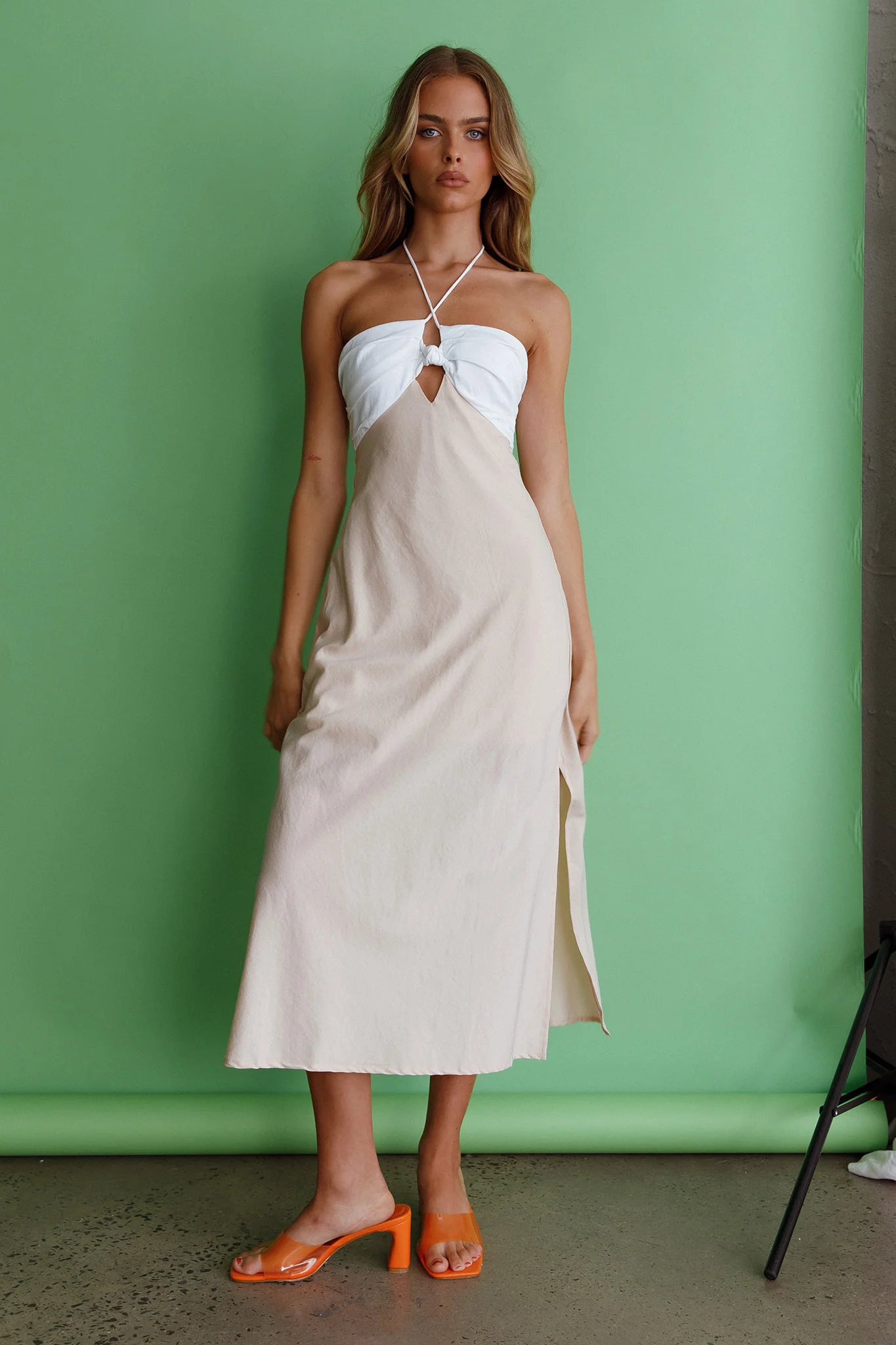 Prue Halterneck Midi Dress Beige