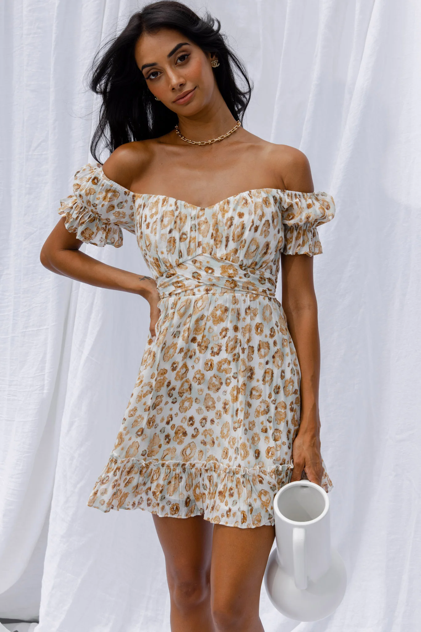 Linka Off-Shoulder Tie Back Dress Animal Print Yellow