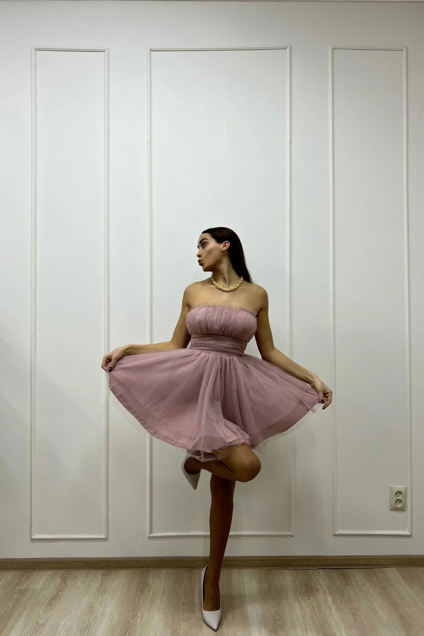 Kathryn Tied Shoulder Mesh Midi Dress Blush