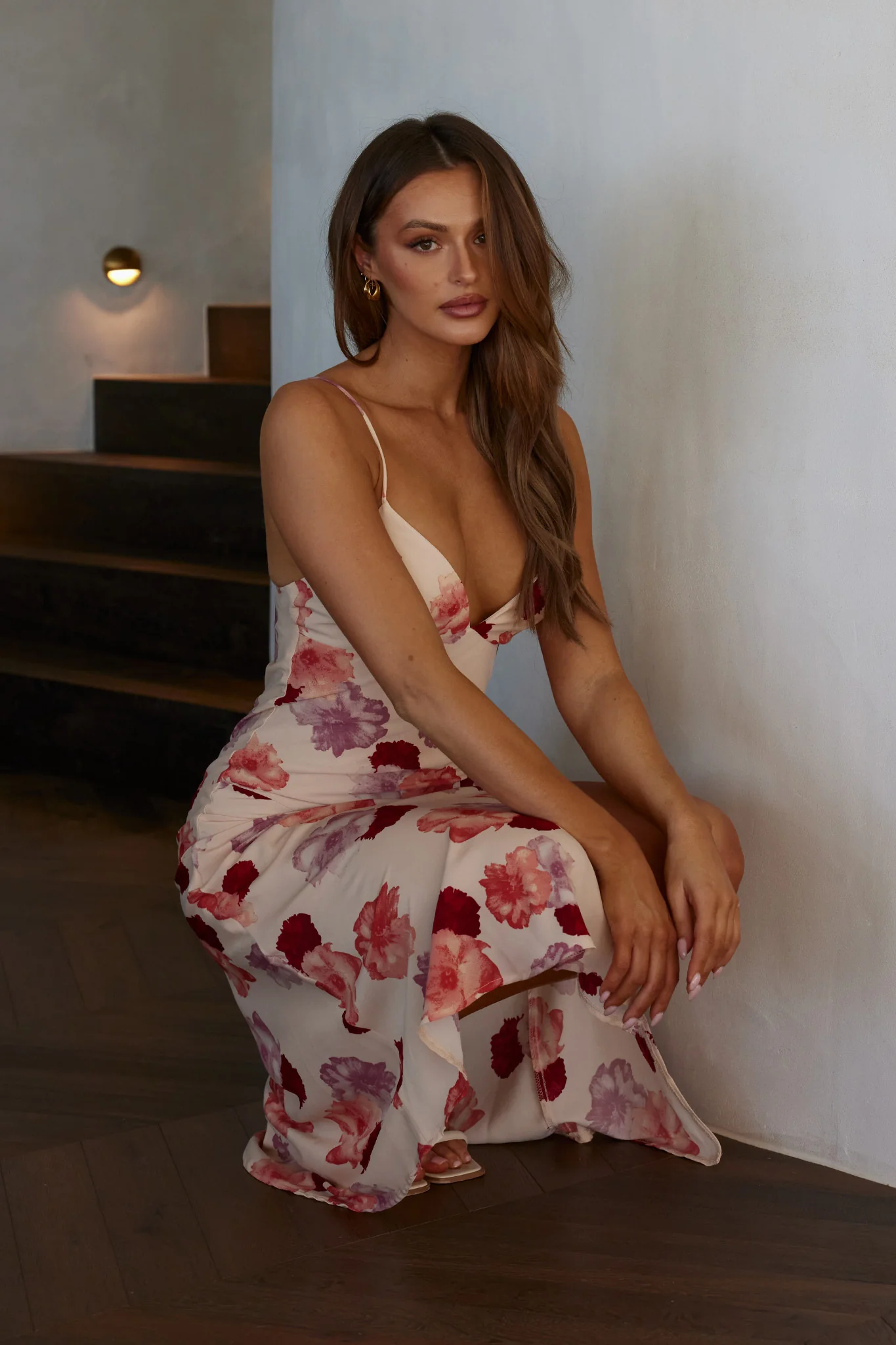 Downtown Cami Strap Front Split Midi Dress Flower Rose