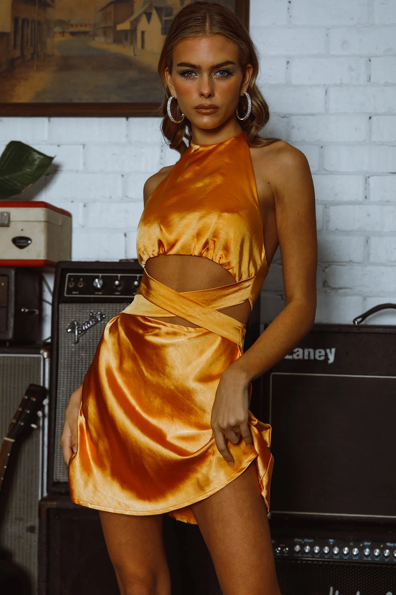 Lucinda Twist Back Mini Dress Yellow
