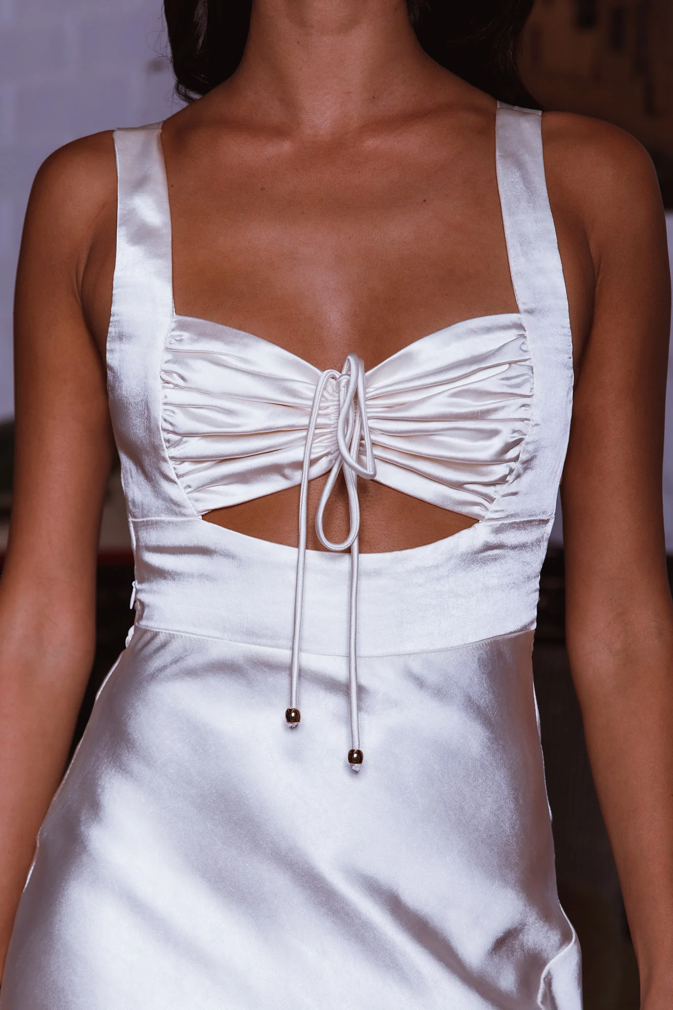 Belle Epoque Drawstring Bust Midi Dress Oyster