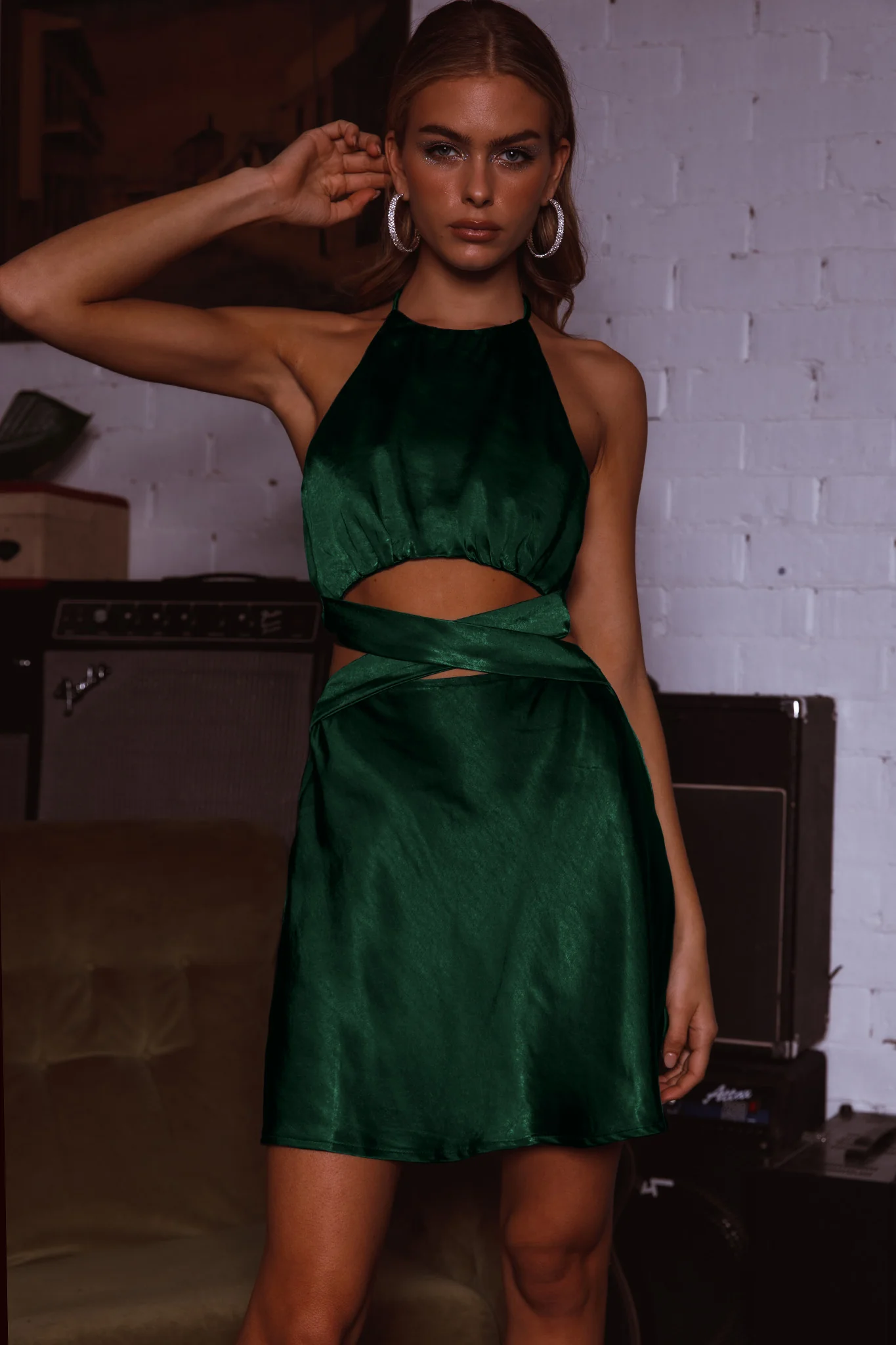 Social Butterfly Cut-Out Waist Mini Dress Forest Green
