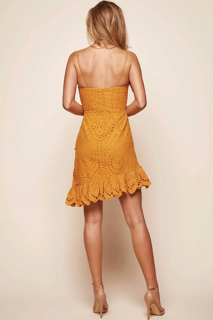 Jillian Ruffle Crossover Strap Dress Mustard