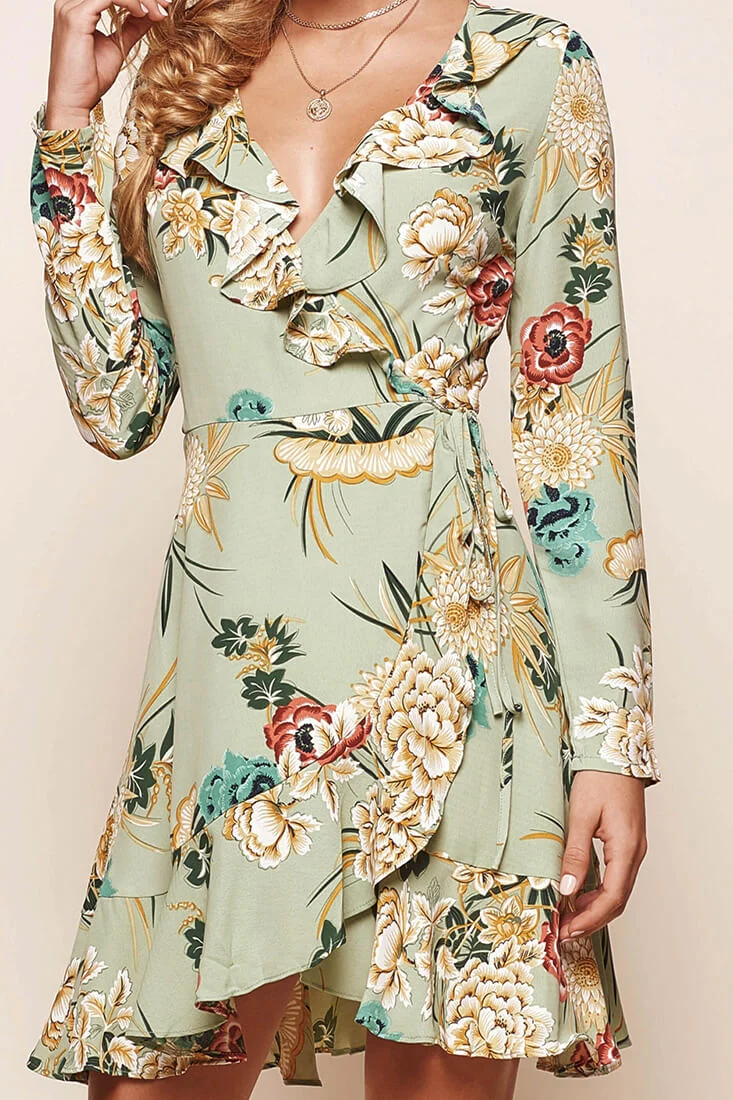 Tammy Tie Waist Wrap Dress Green