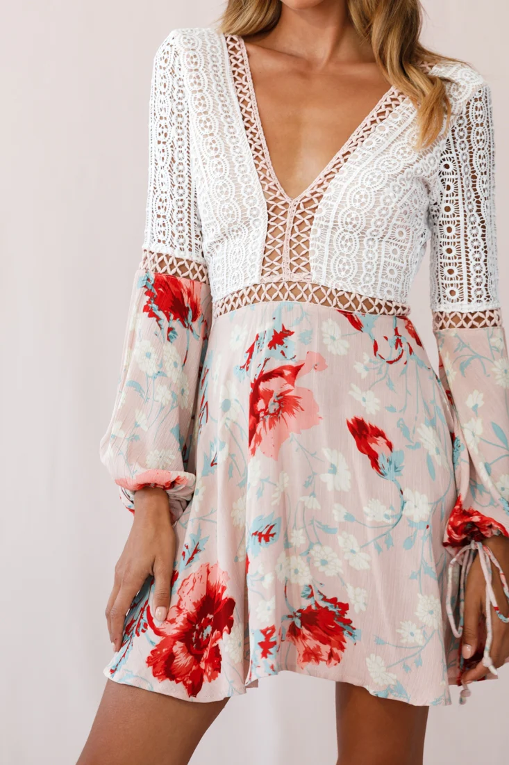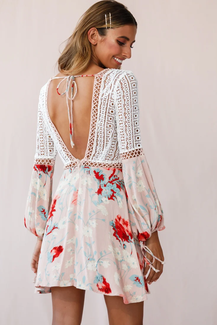 Carson Crochet Details Dress Floral Pink
