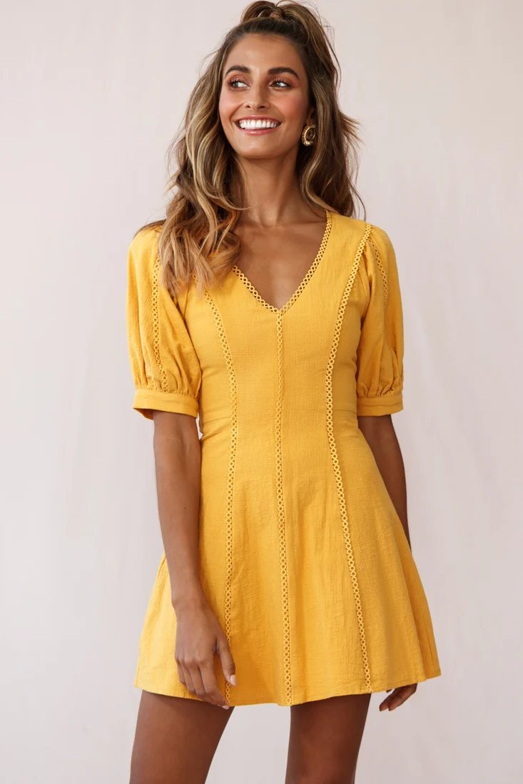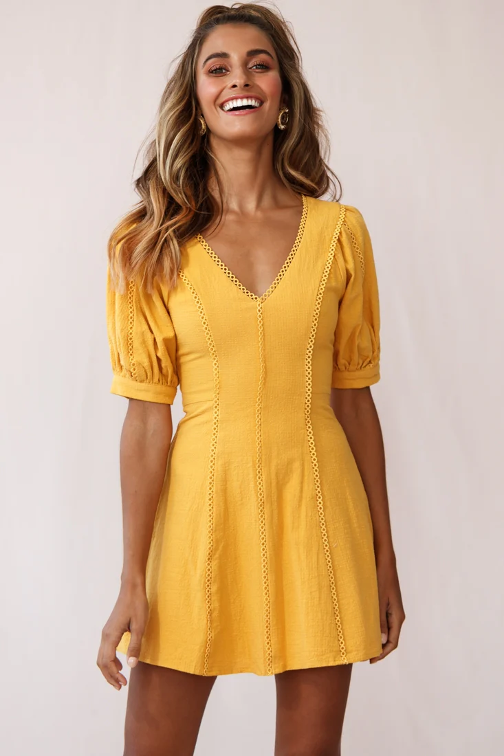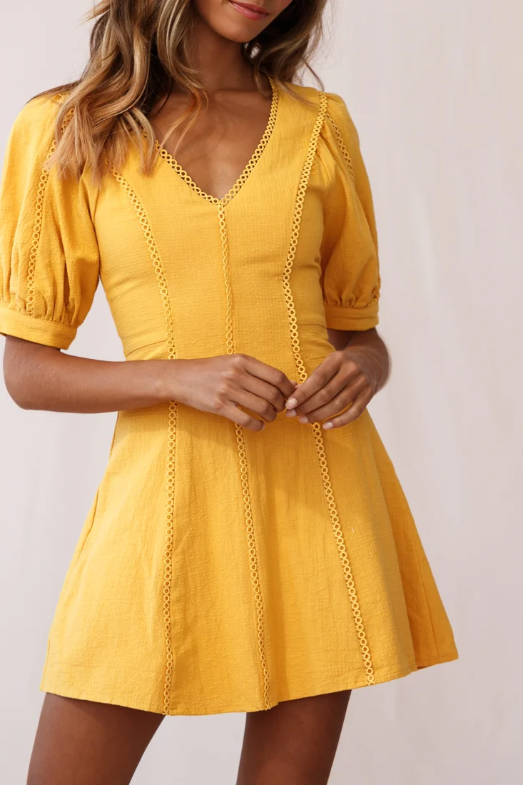 Mary-Kate Babydoll V-neck Dress Yellow
