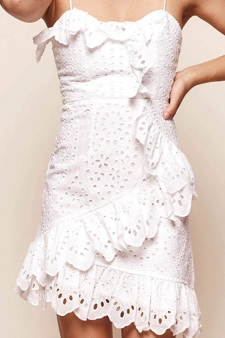 Monica Broderie Anglaise Ruffle Dress White