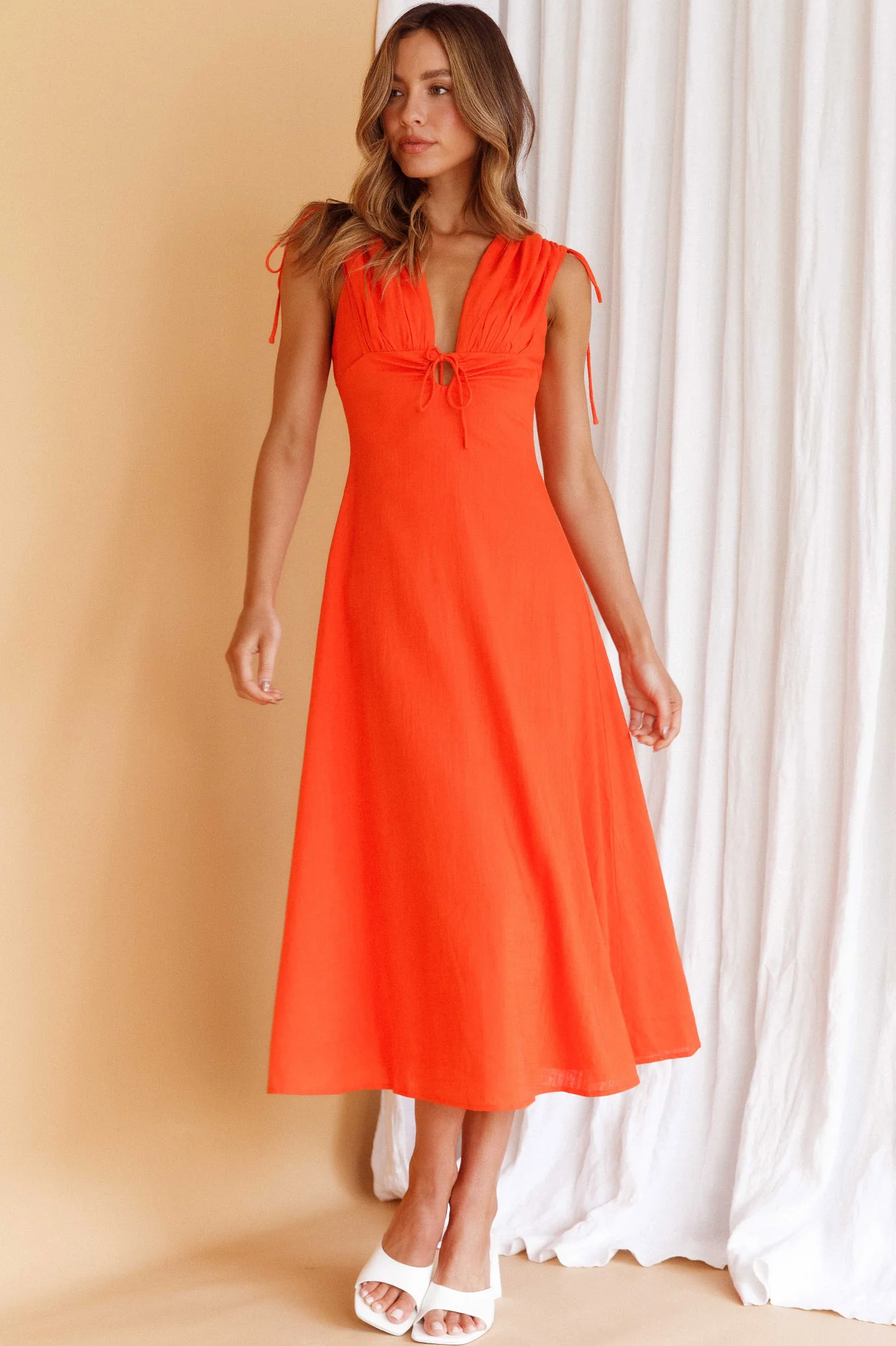 Clovelly Tied Shoulder Midi Dress Orange
