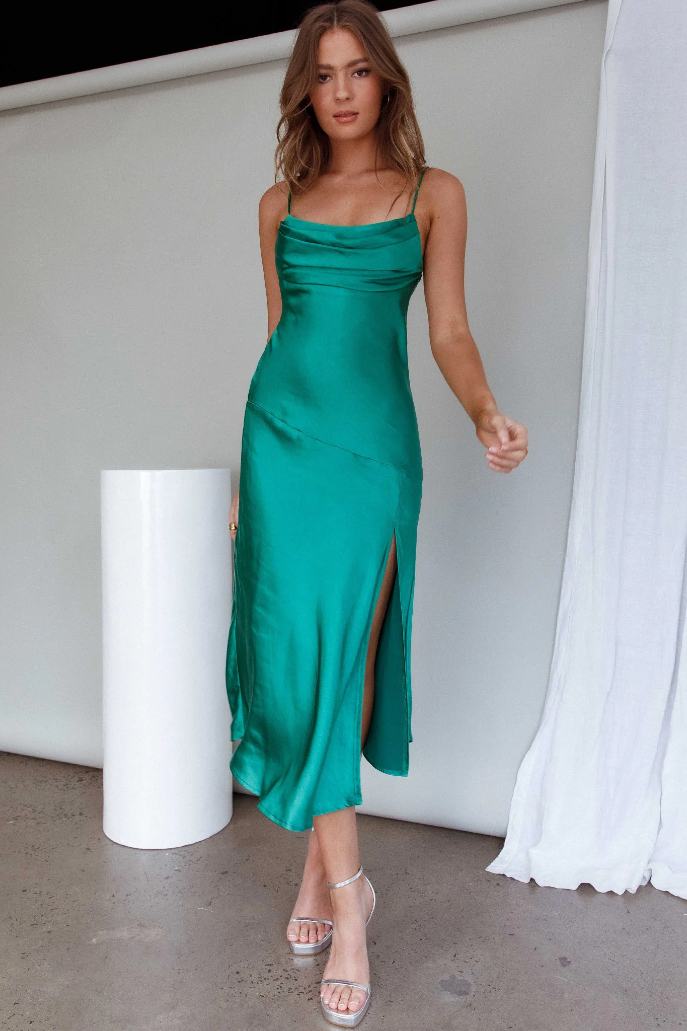 Island Time One-Shoulder Midi Dress Satin Champagne