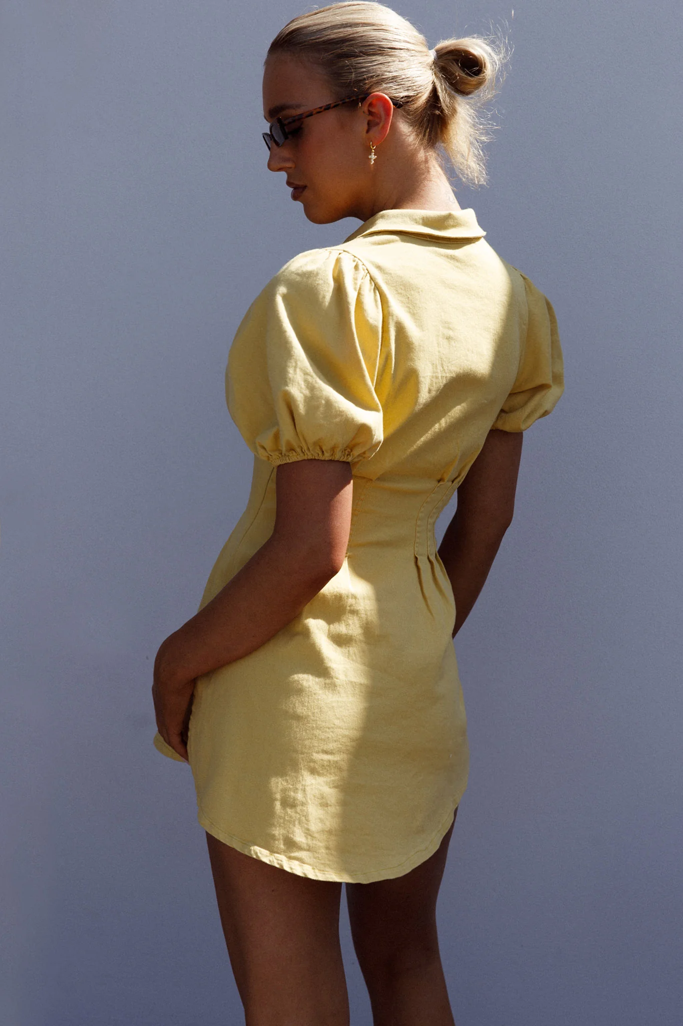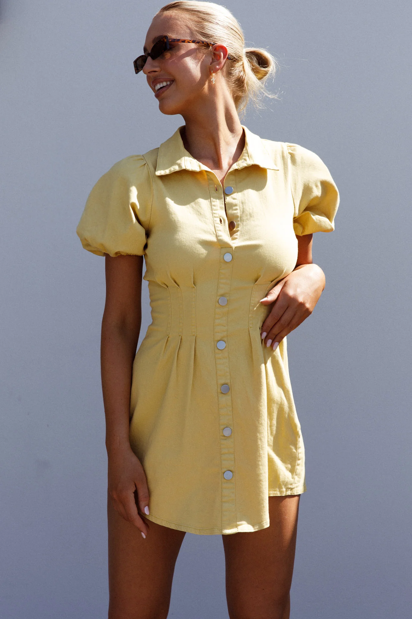 Zurich Pleated Waist Shirt Dress Light Yellow