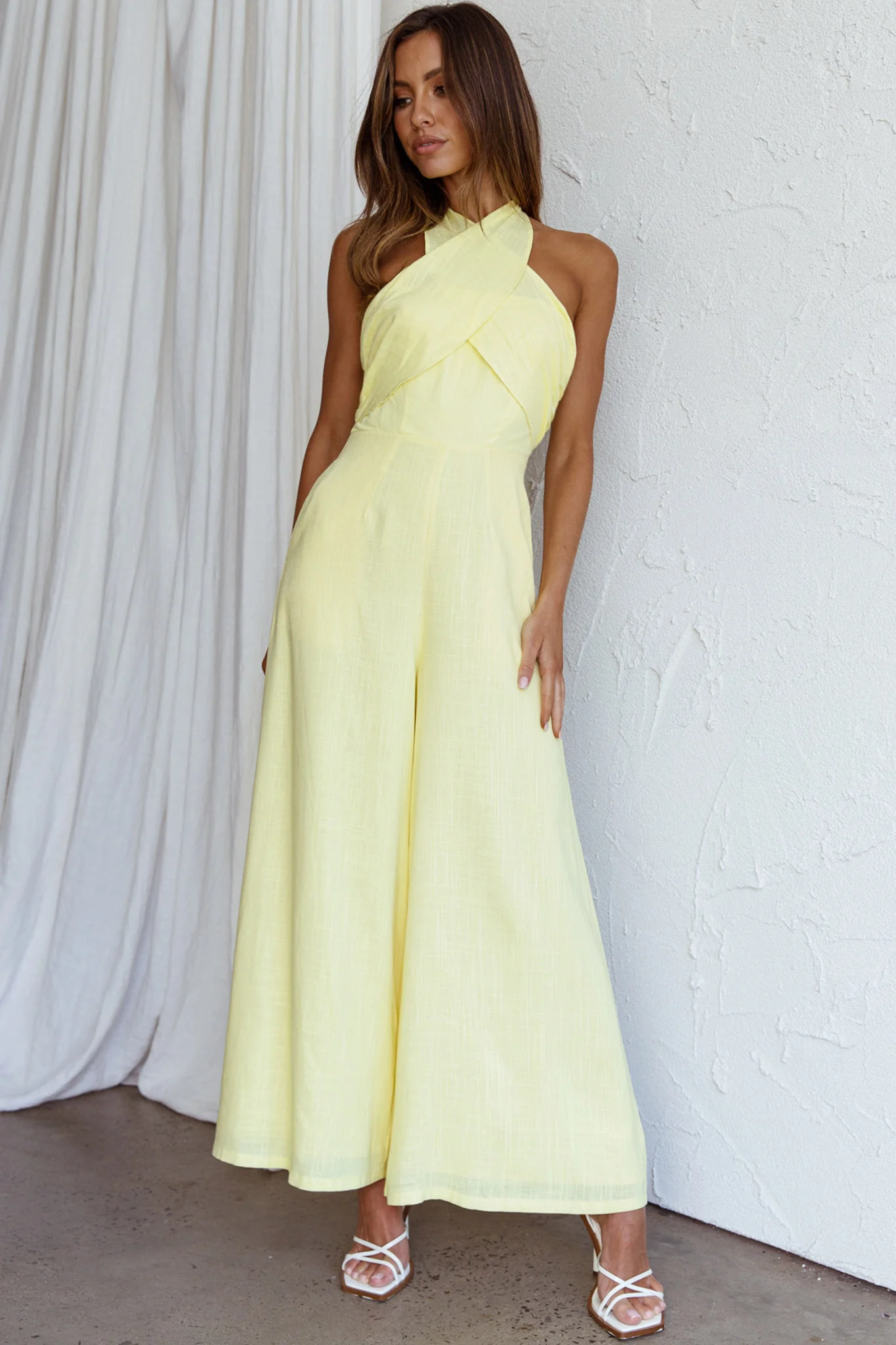 Stars Align Halterneck Jumpsuit Lemon