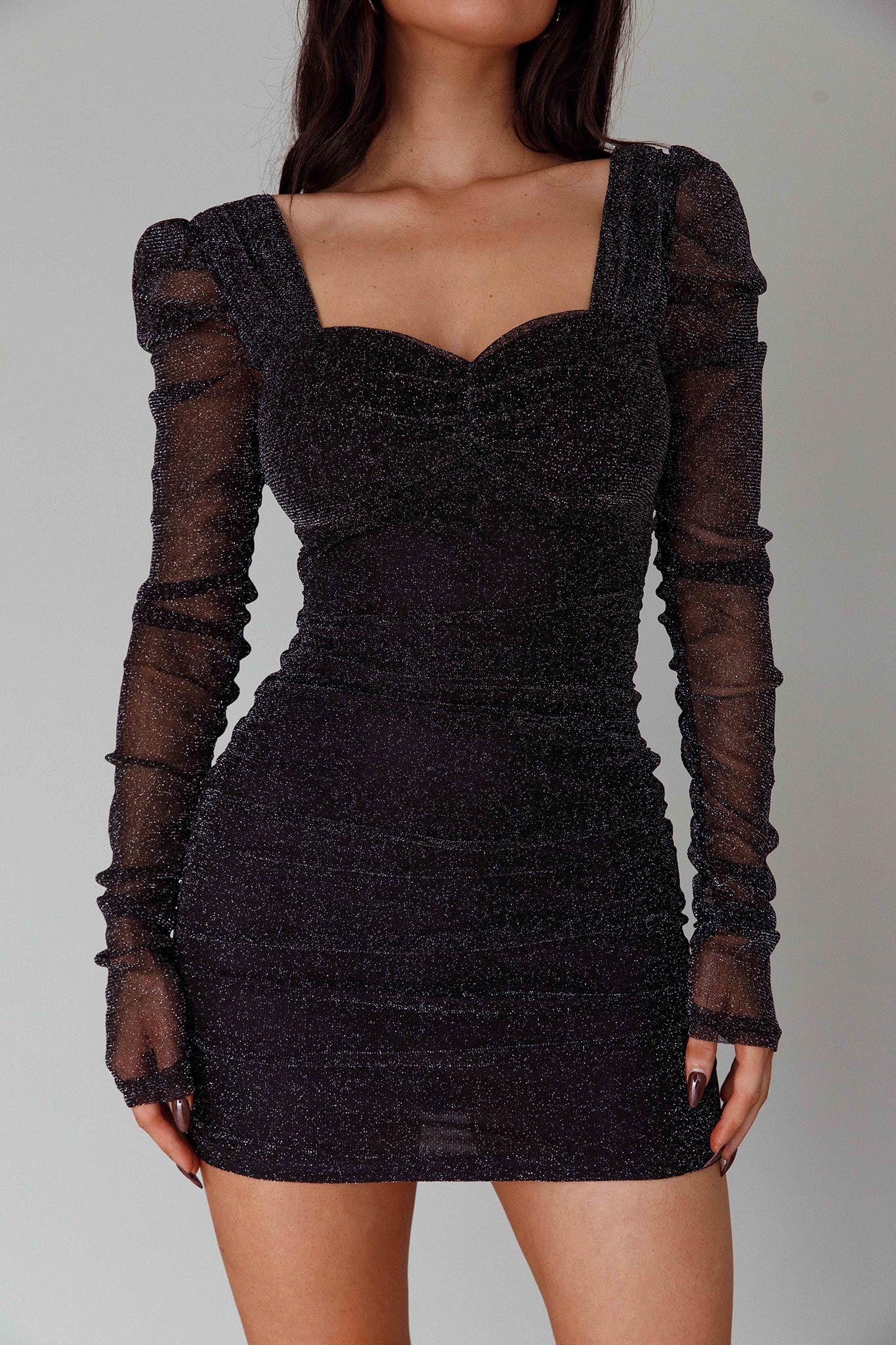 Ryah Long Sleeve Mini Dress Sparkle Black