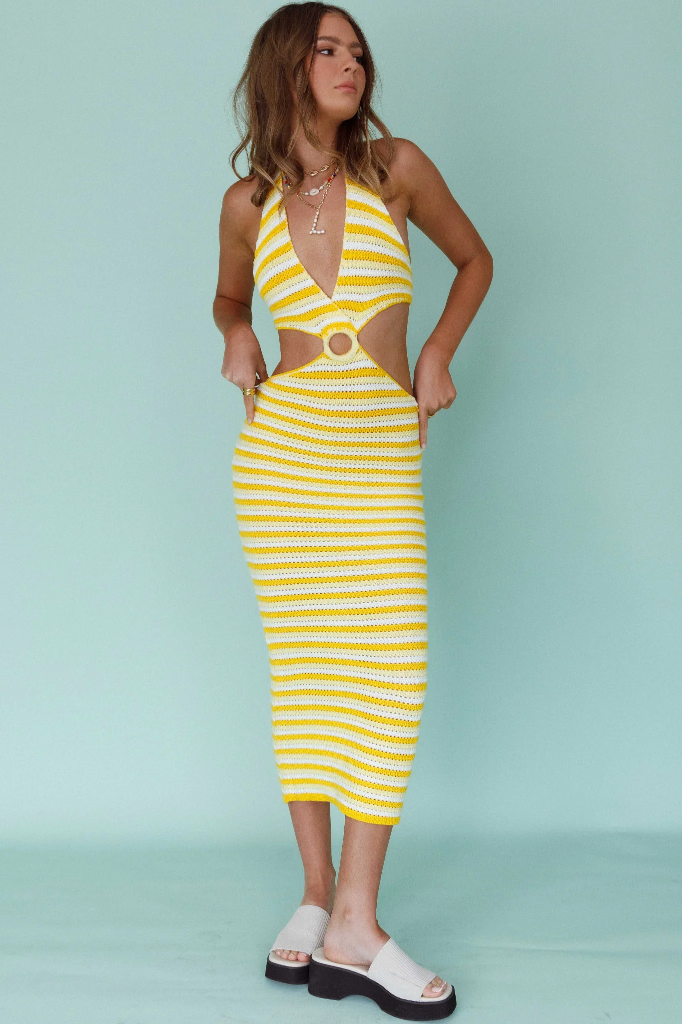Makaria Cut-Out Crochet Midi Dress Lemon