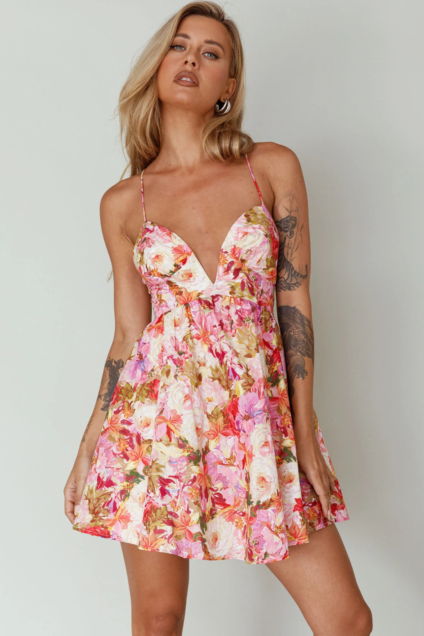 Spring Fever Lace-Up Back Mini Dress Floral Pink