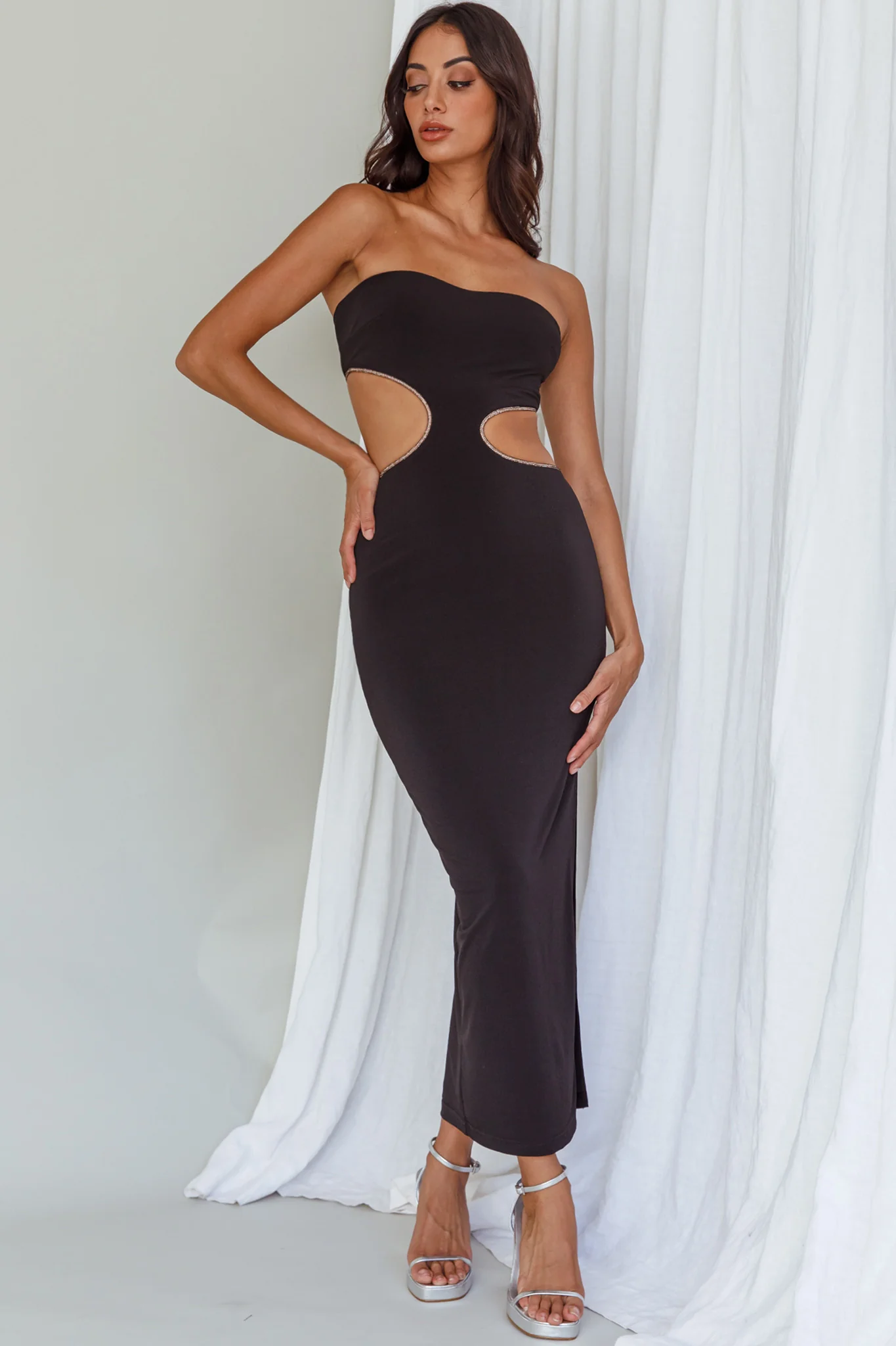 Call On Me Diamante Fringe Strapless Mini Dress Black