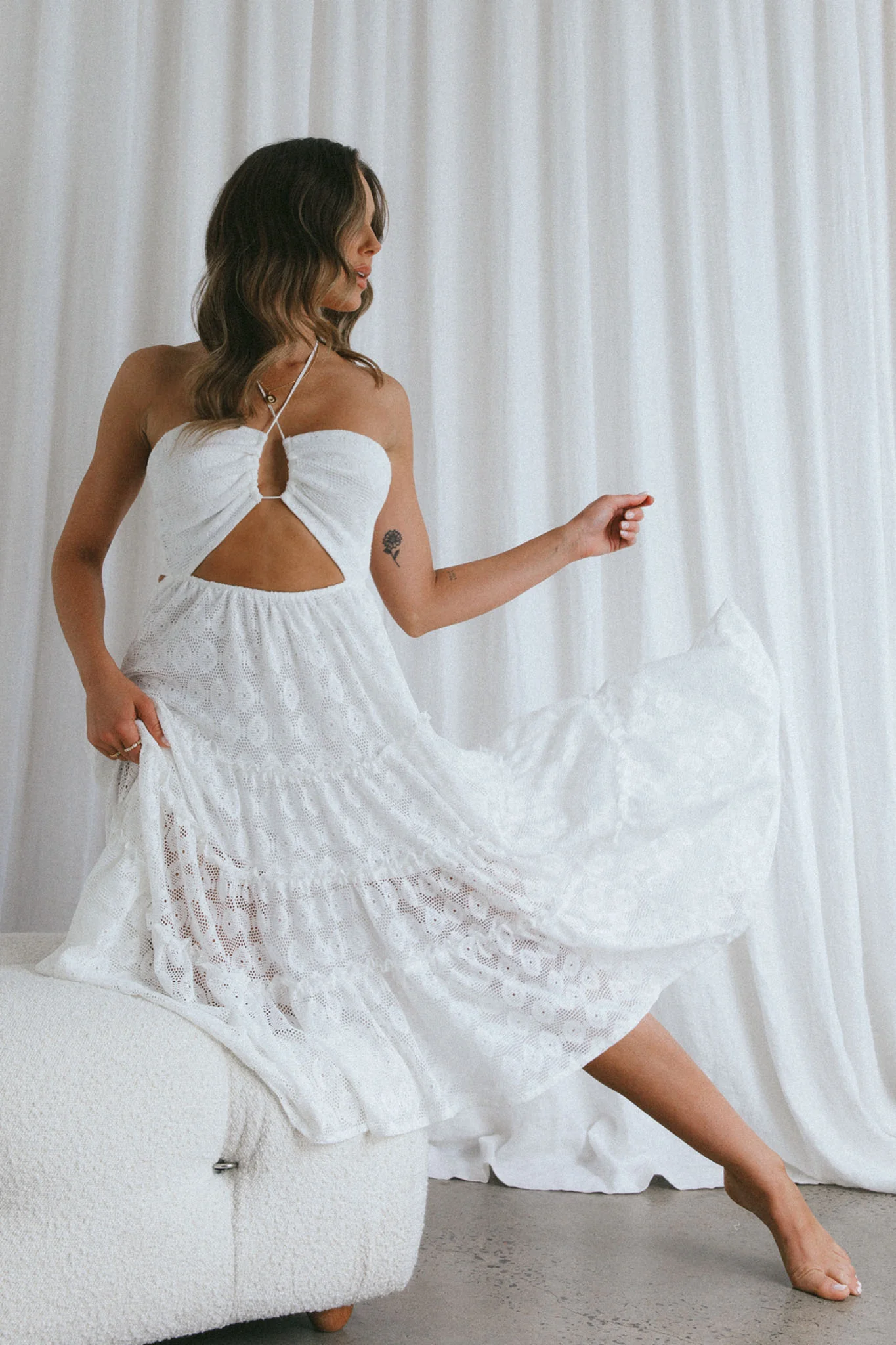 Just Cruise Cut-Out Bodice Midi Dress White
