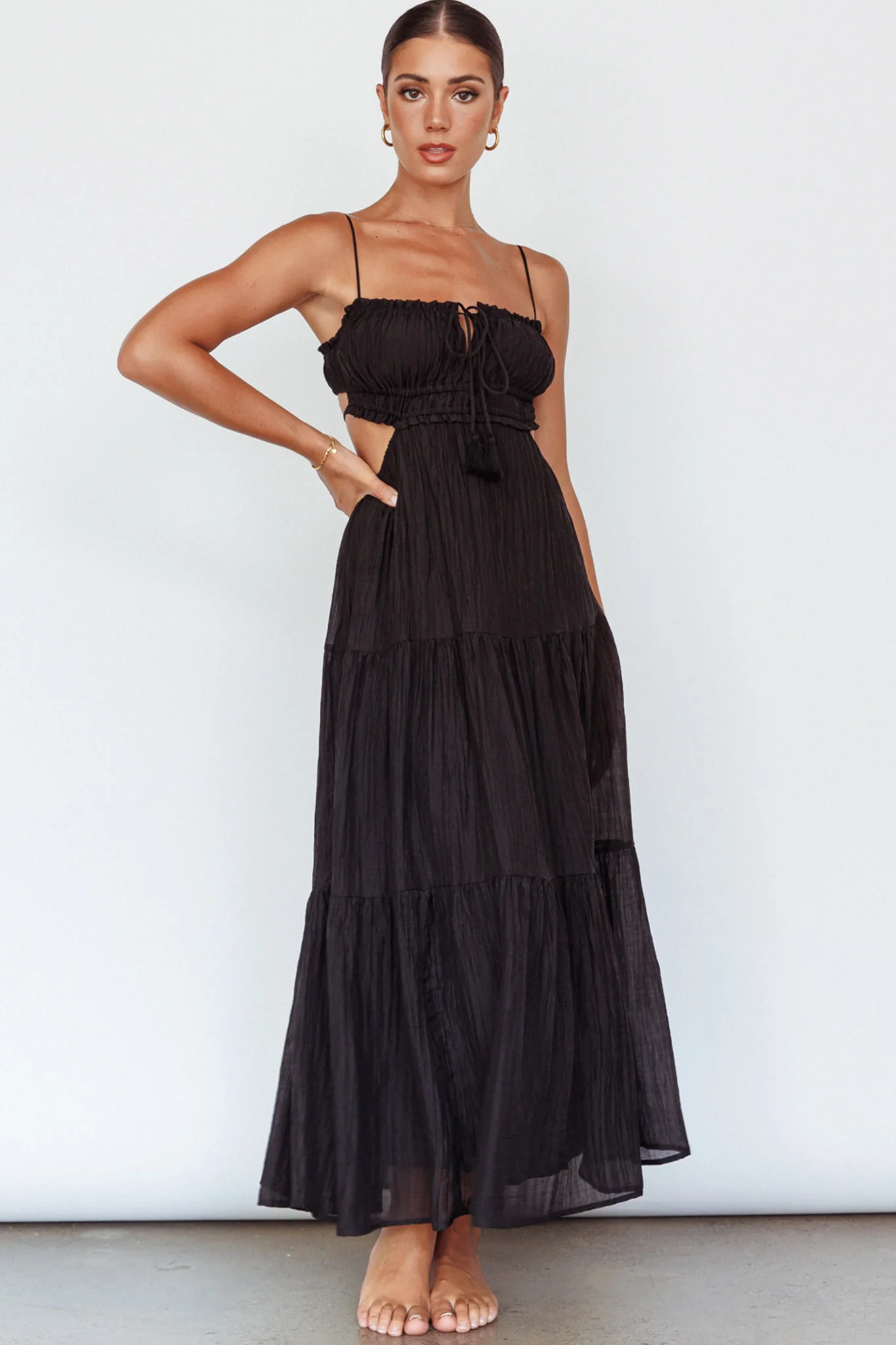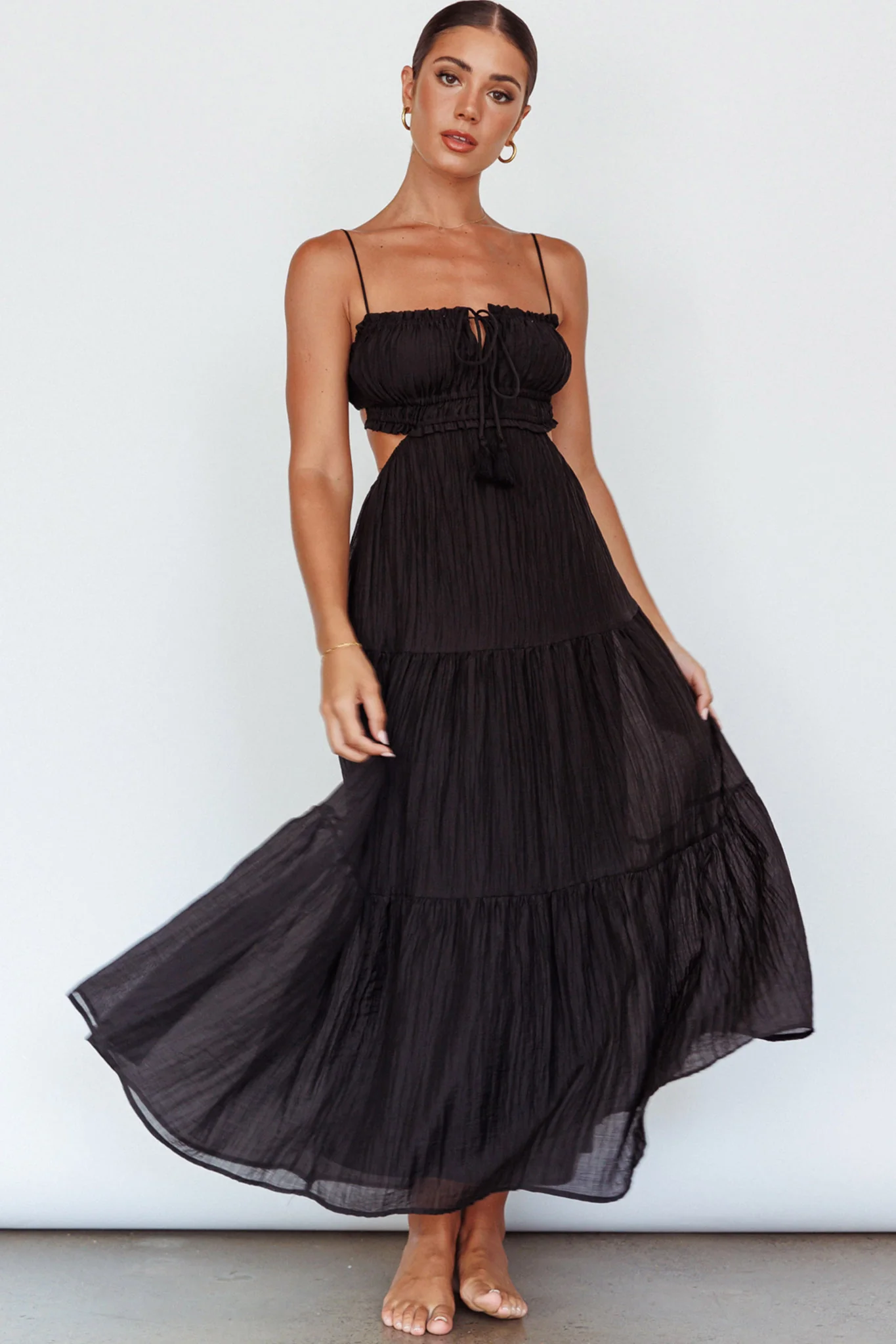 Eyona Cut-Out Waist Tie Maxi Dress Black