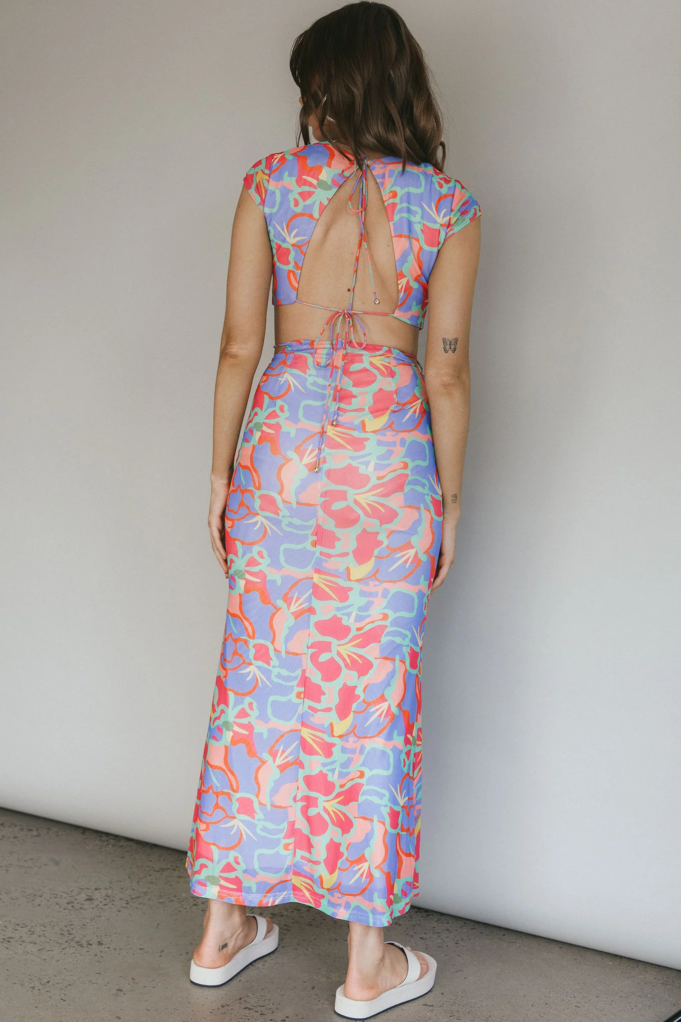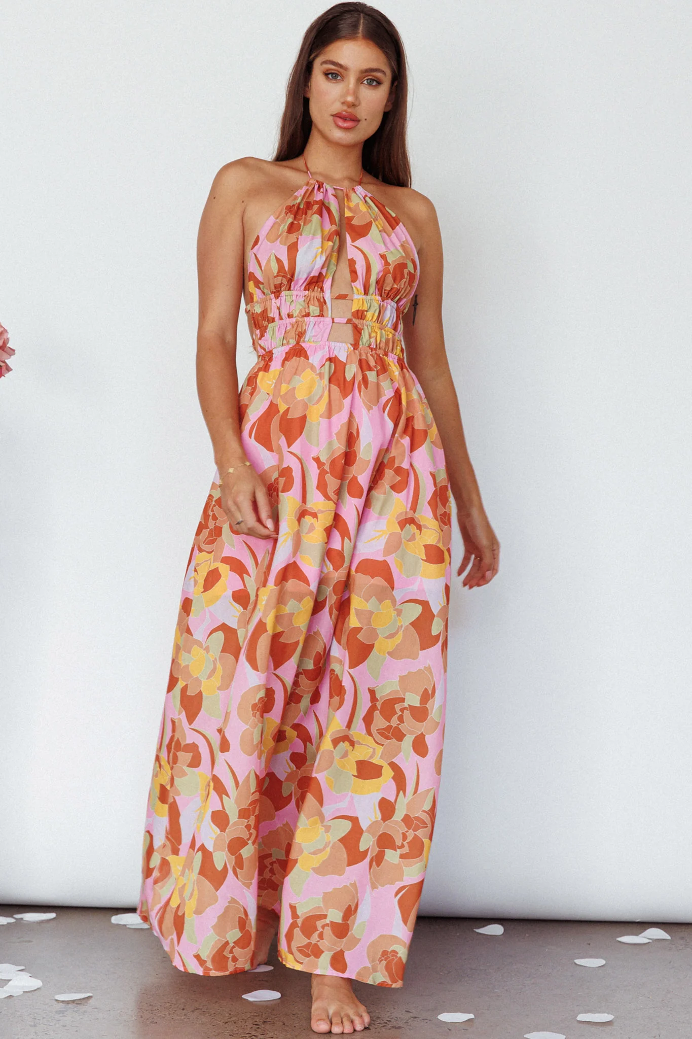 Cyndi Open Back Halterneck Maxi Dress Pink Multi
