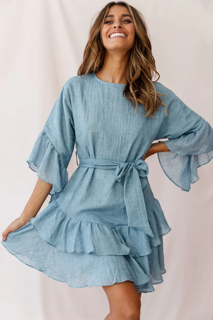Wilshire Tiered Ruffle Hem Dress Denim Blue