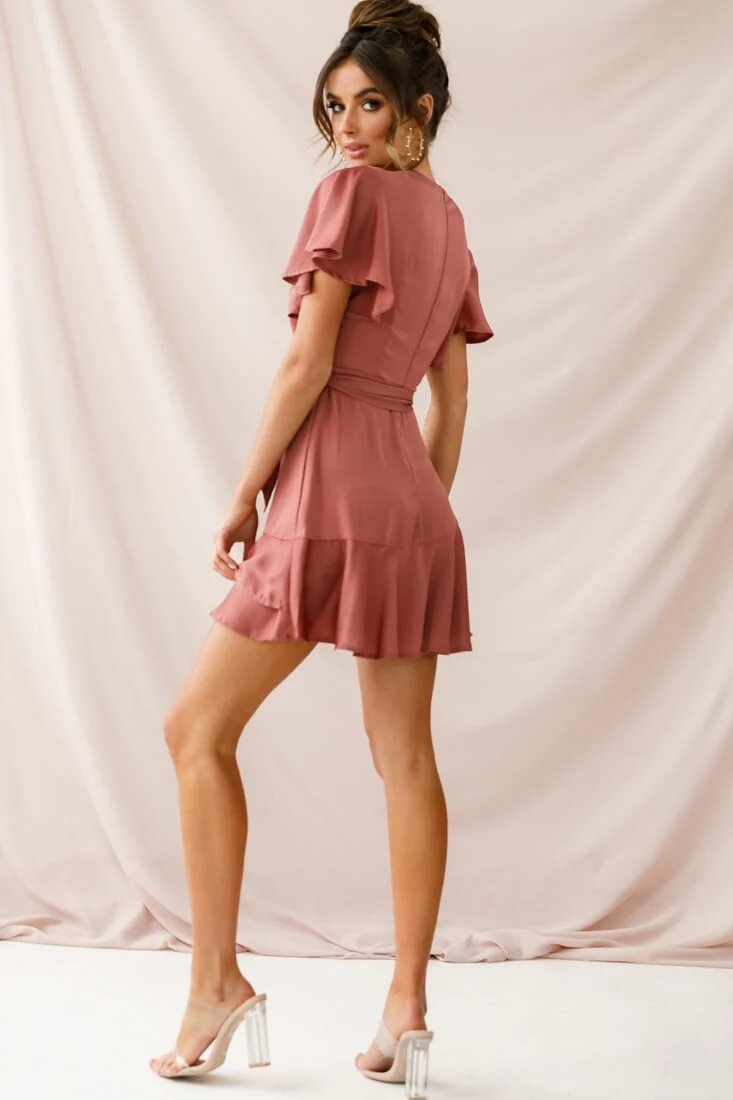 Cami Angel Sleeve Faux Wrap Dress Rose