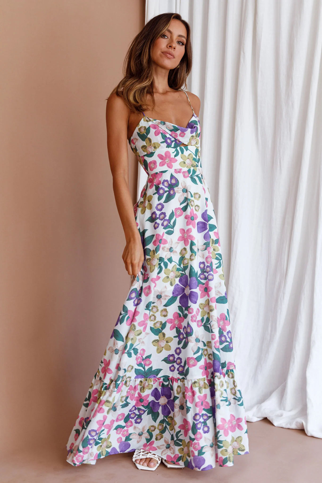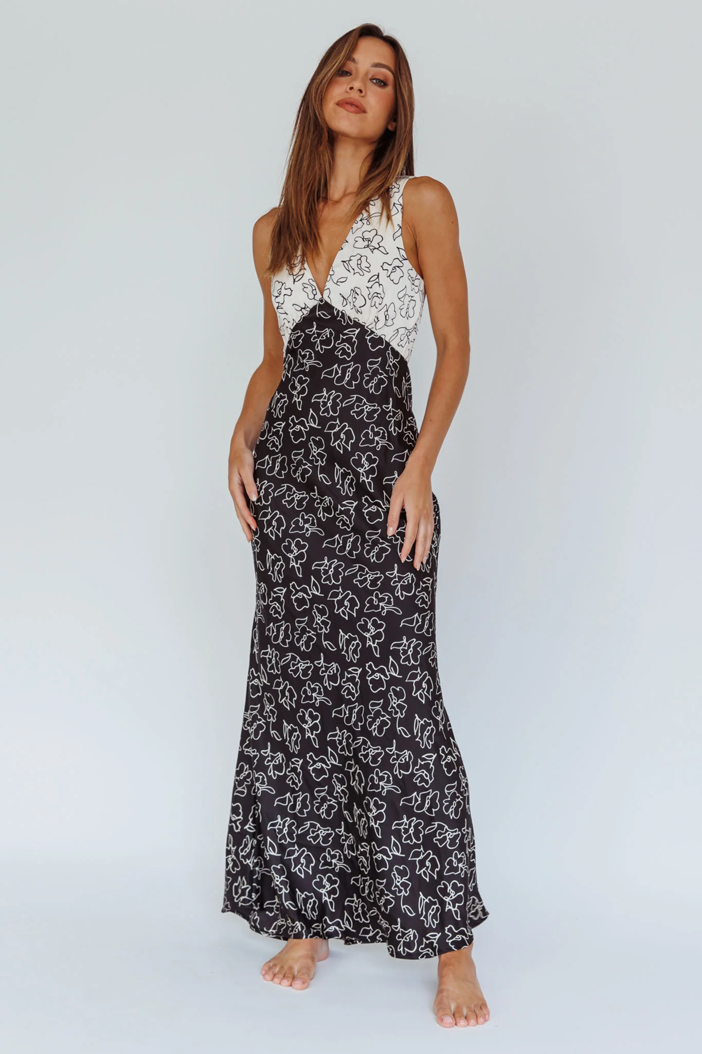 Coucou V-Neckline Maxi Dress Floral White/Black