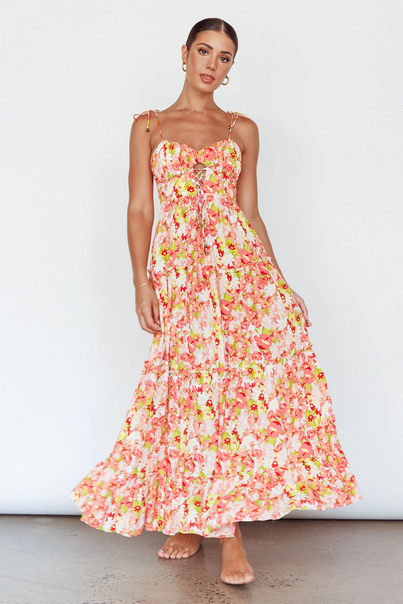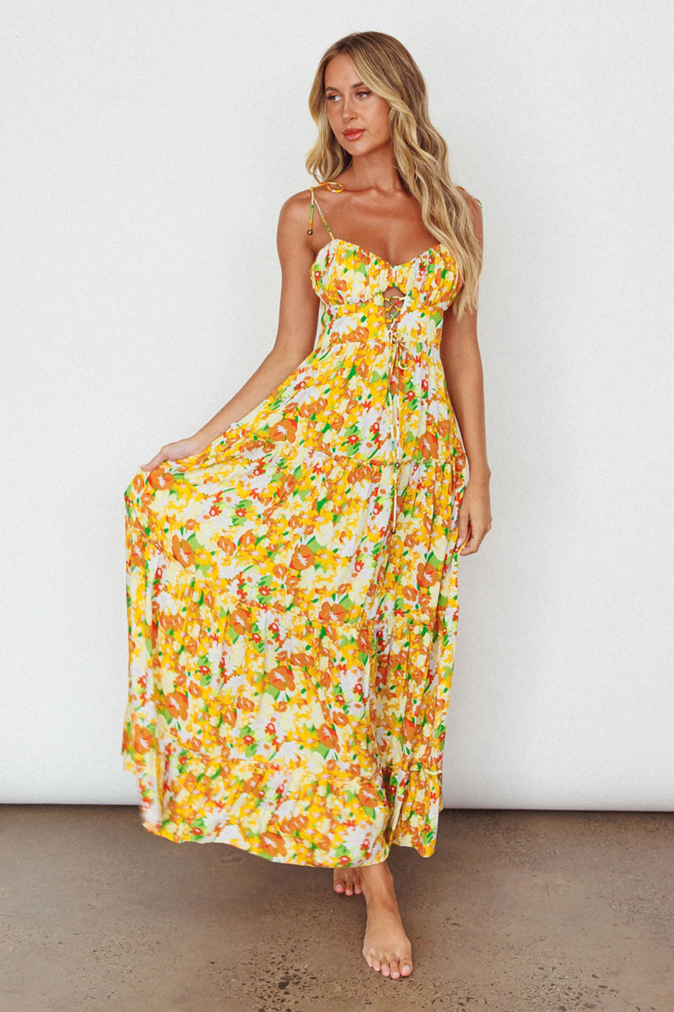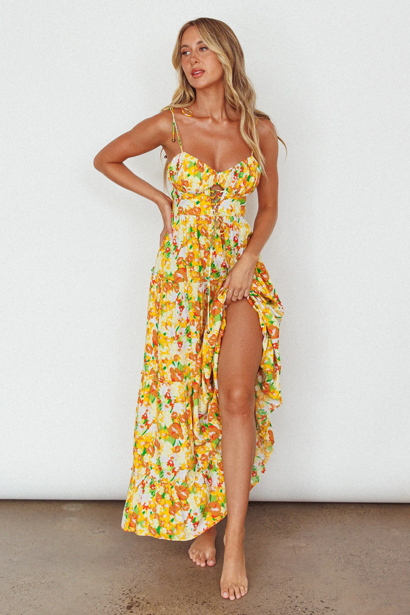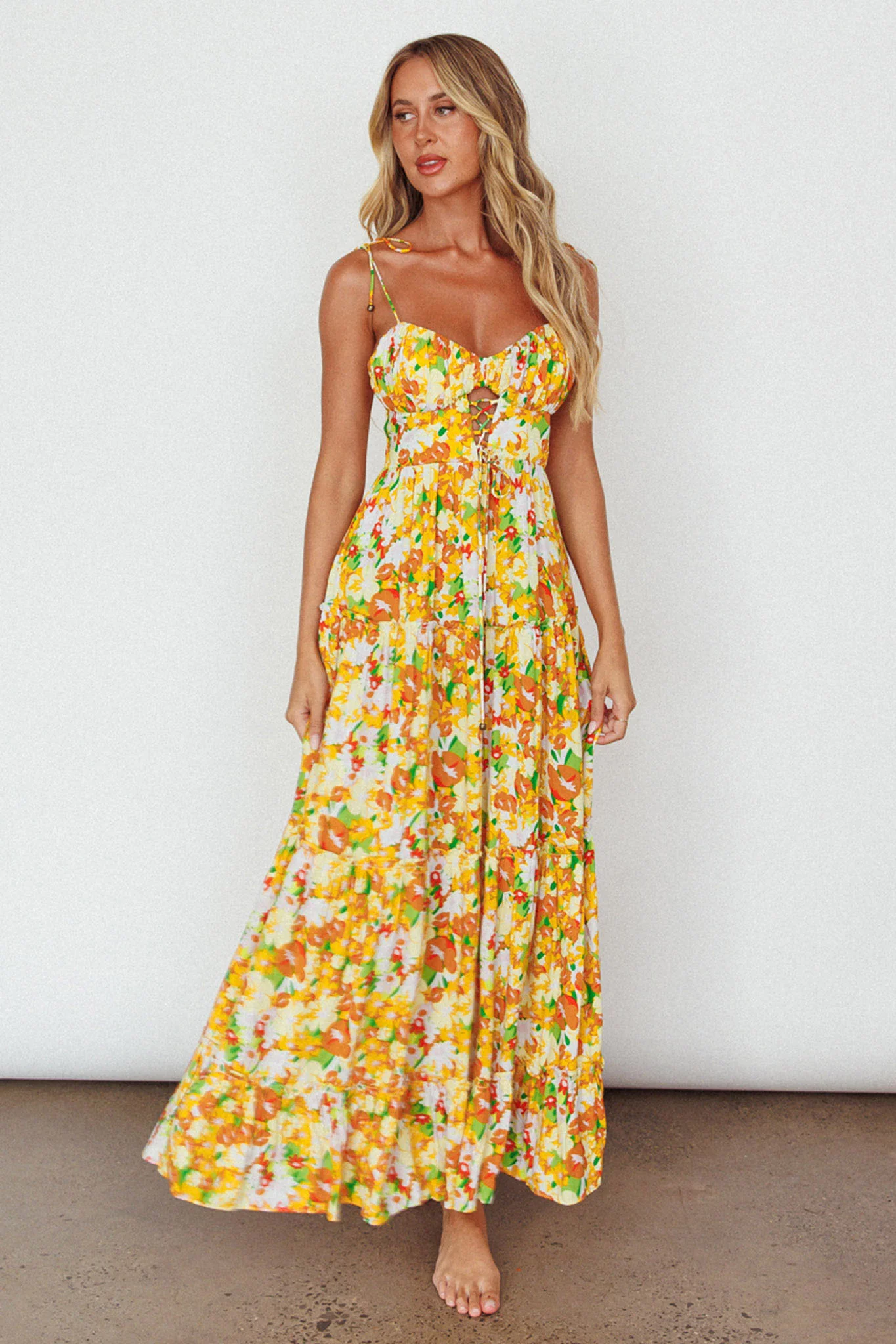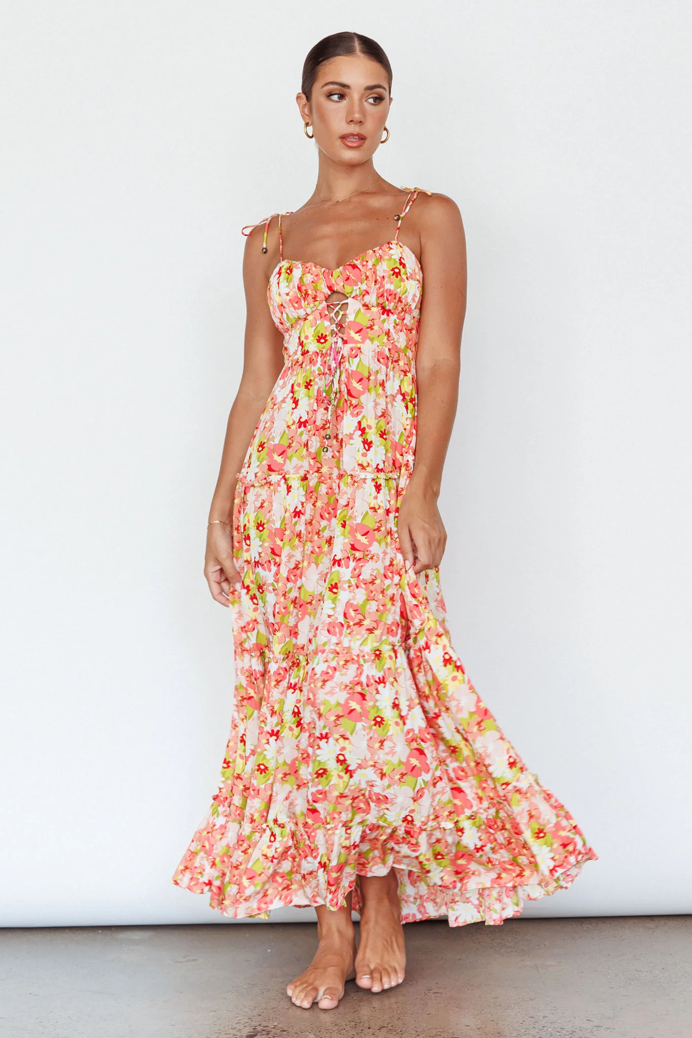 Kinlee Lace-Up Bodice Maxi Dress Floral Orange
