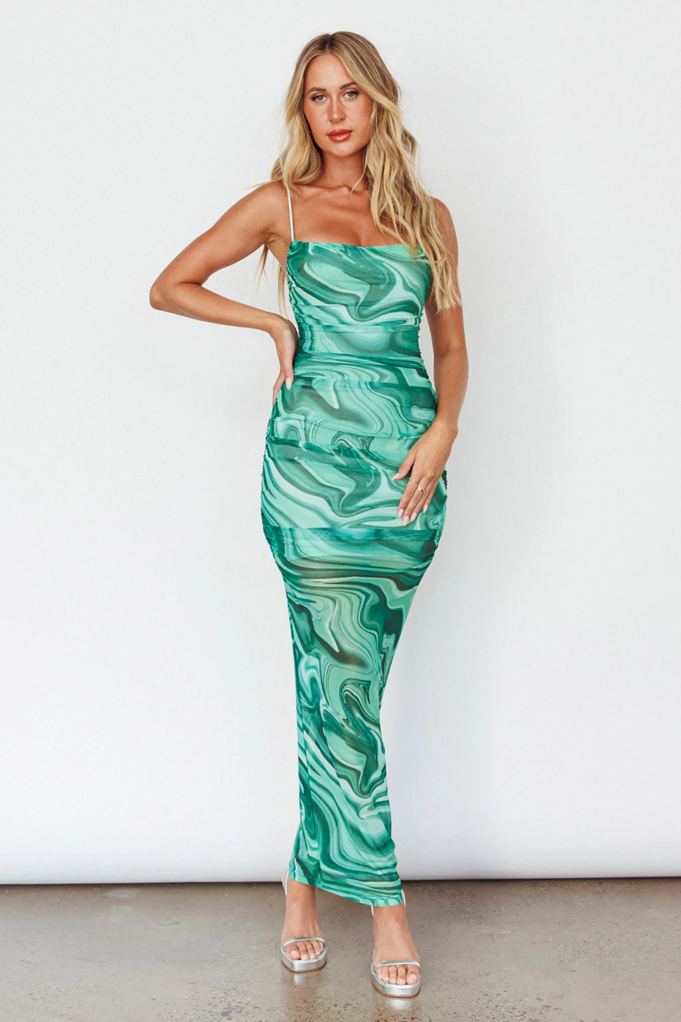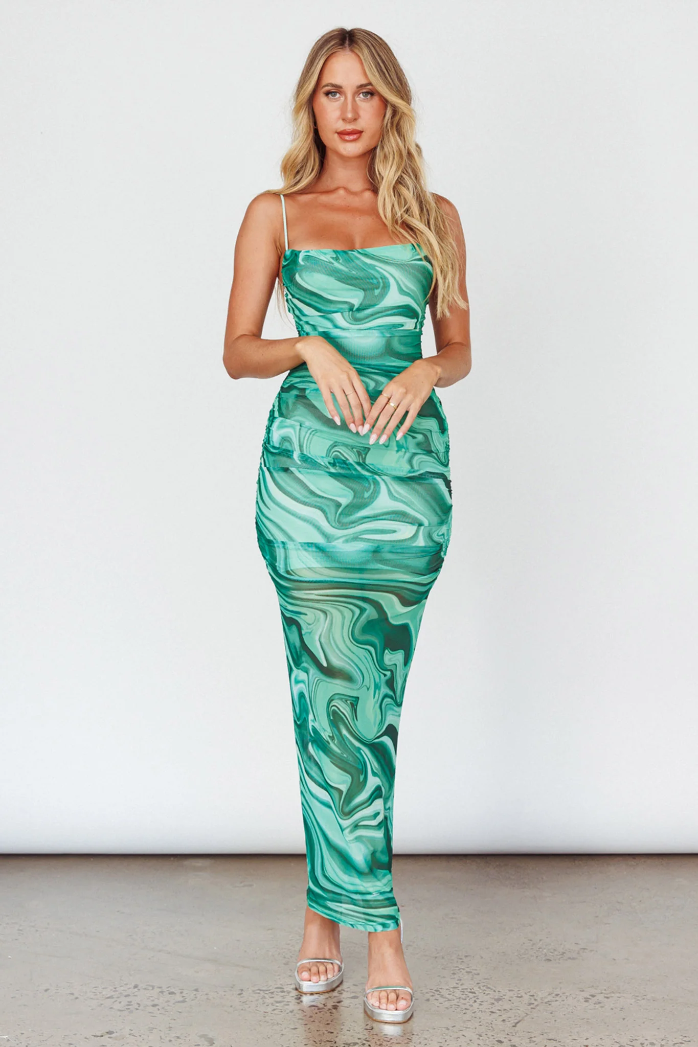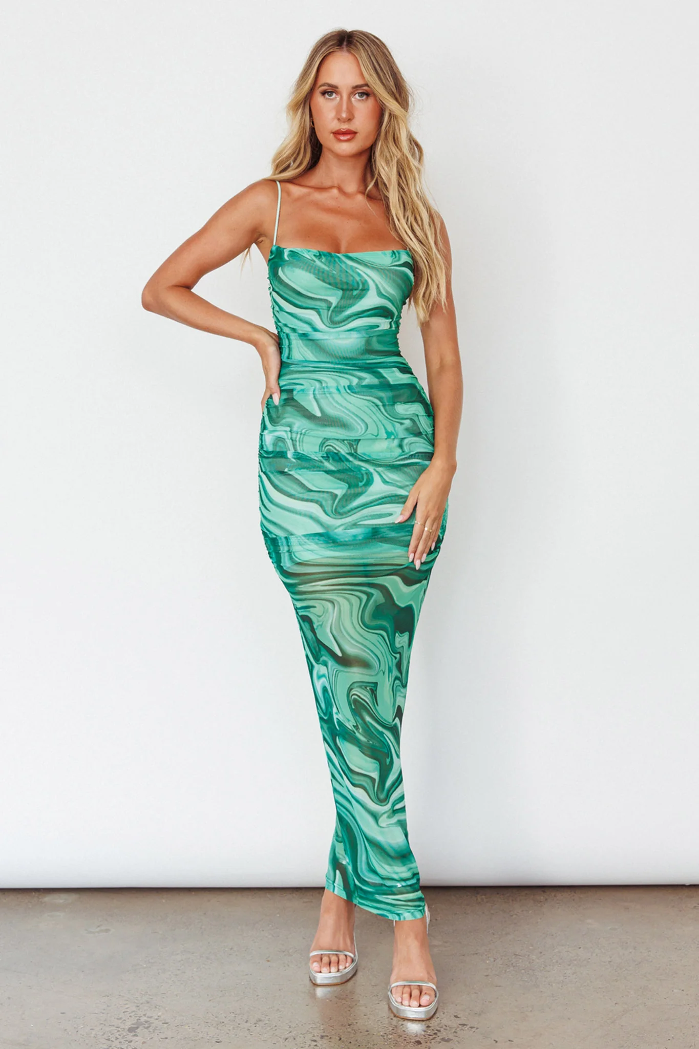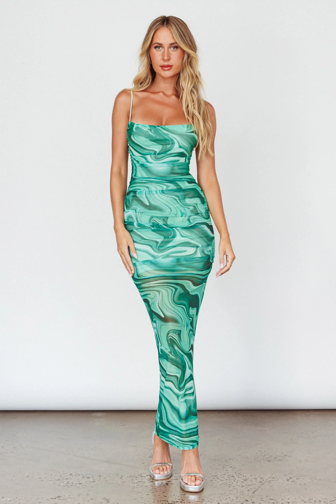 Love In Miami Lace-Up Back Maxi Dress Marble Green