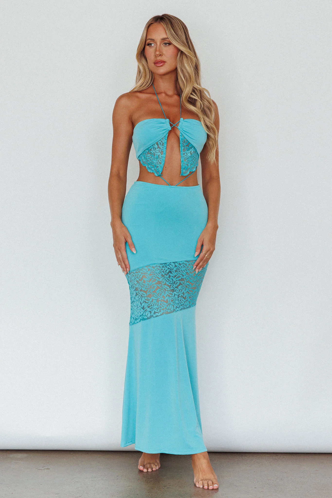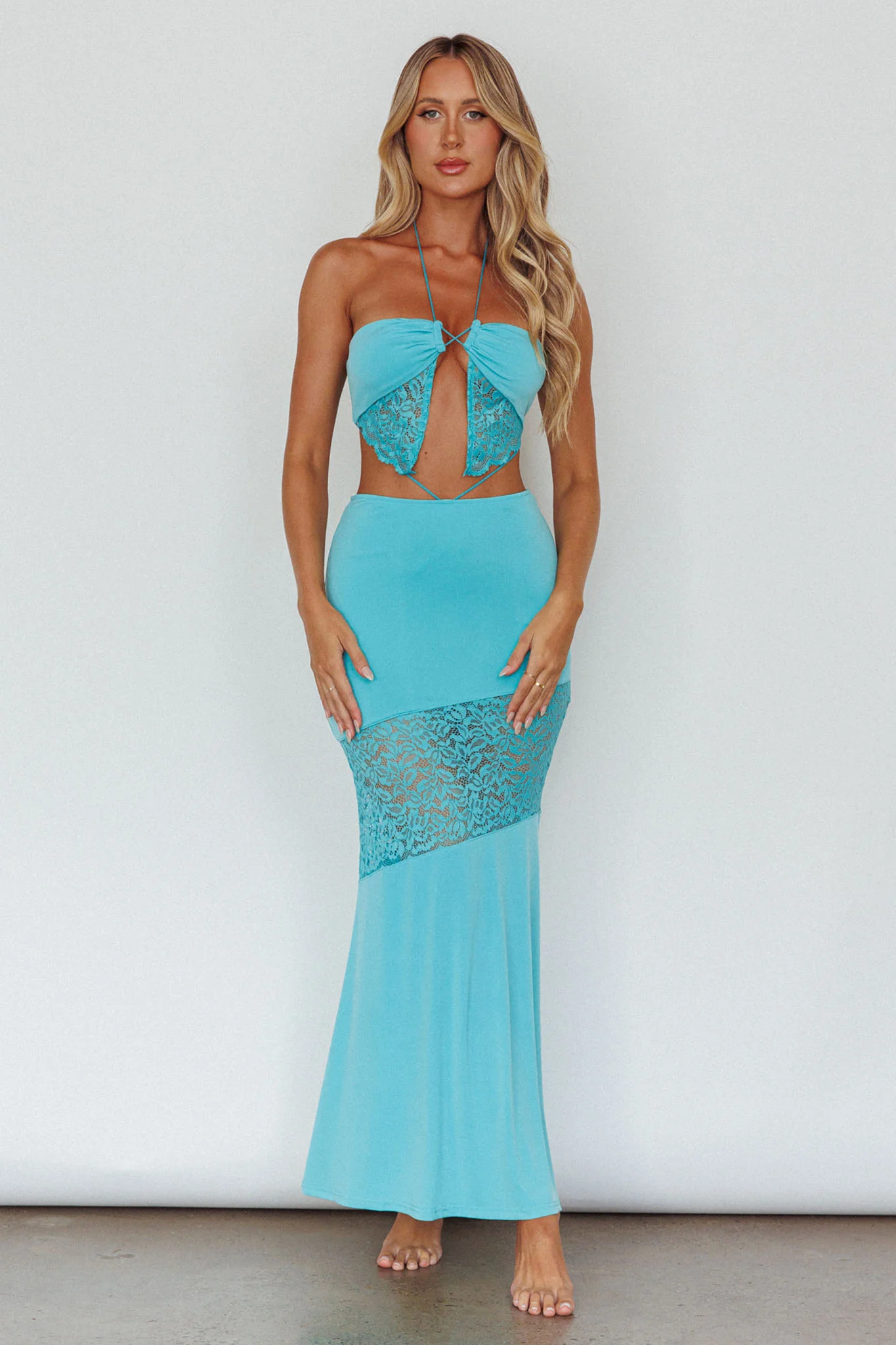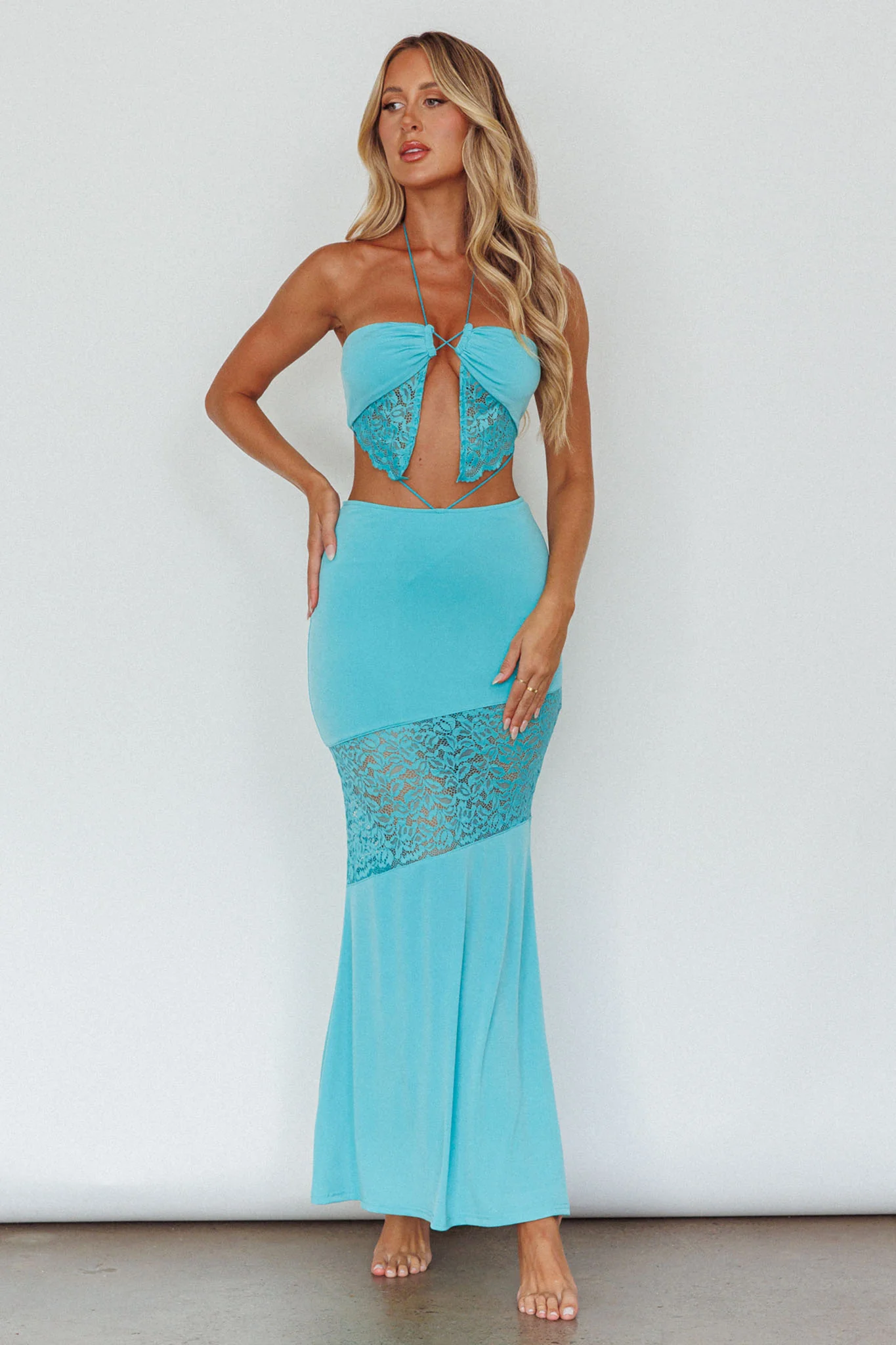 Florida Lace Insert Cut-Out Maxi Dress Blue
